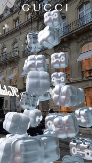 GUCCI AR圣诞盲盒更是将创意拉满。漂浮在城市空间的虚拟礼物盒,点击即可解锁品牌福利,还能组成圣诞树造型,构筑城市空间独特的动态装饰,尽显品牌前沿调性。
