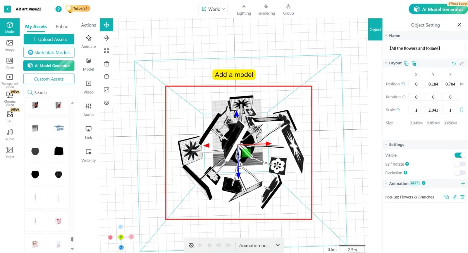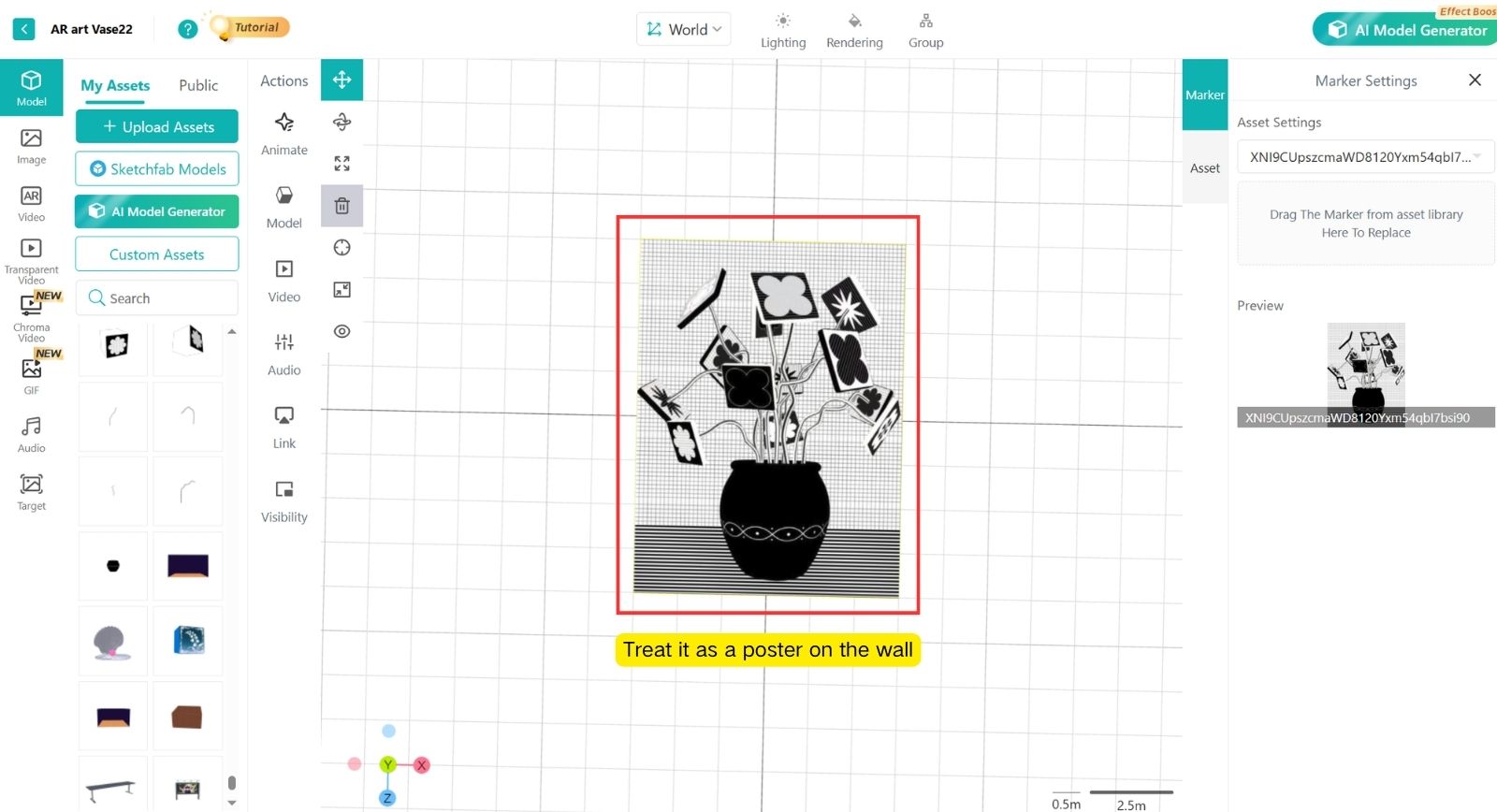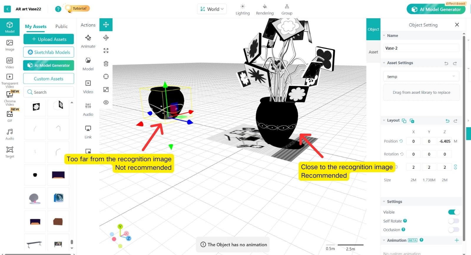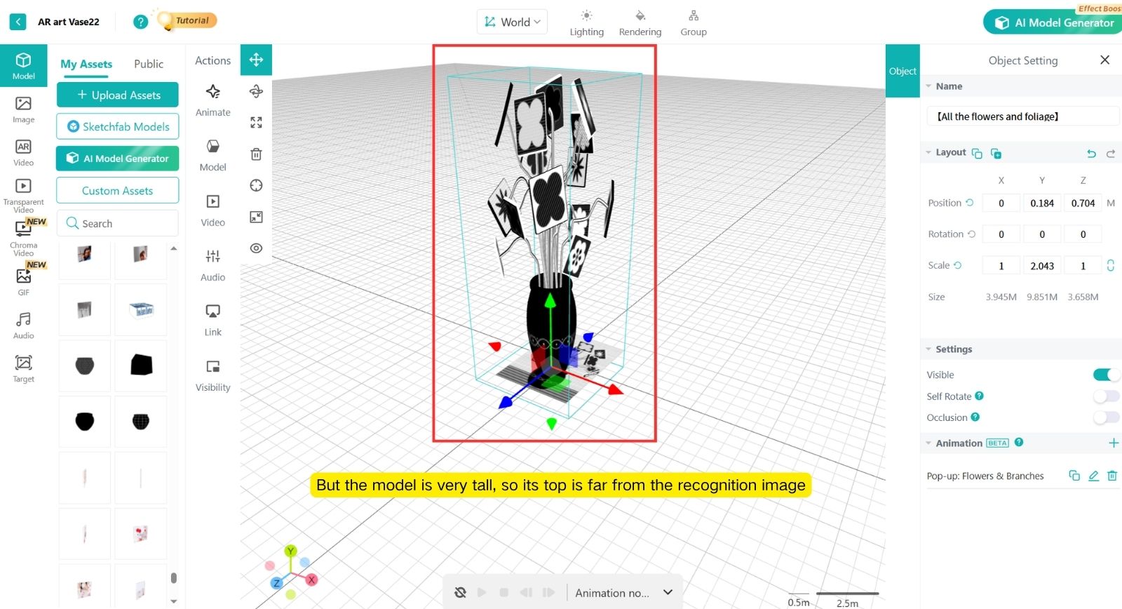 The AR scene placed on the Image marker should not be too tall.