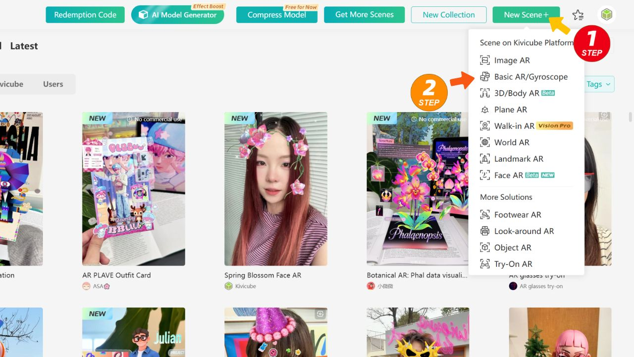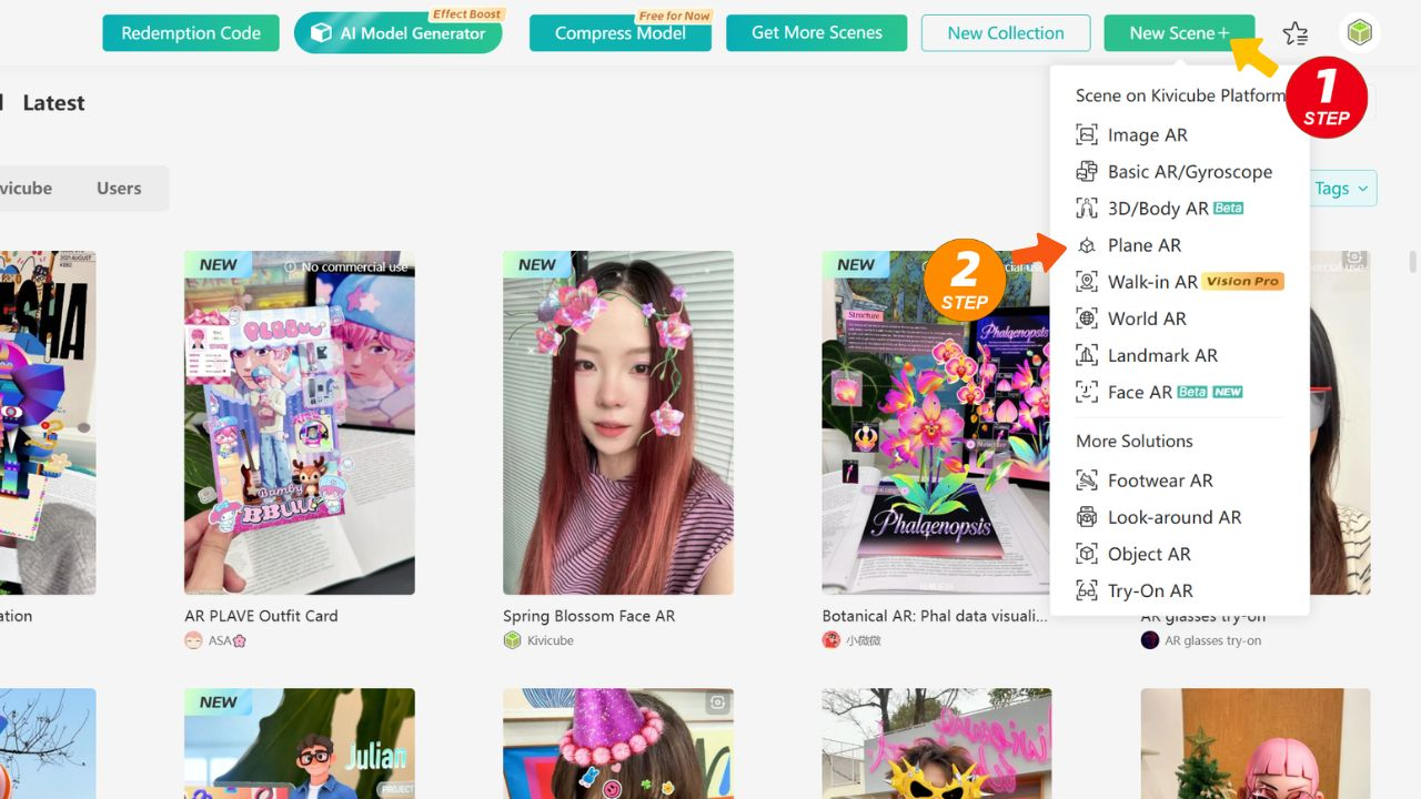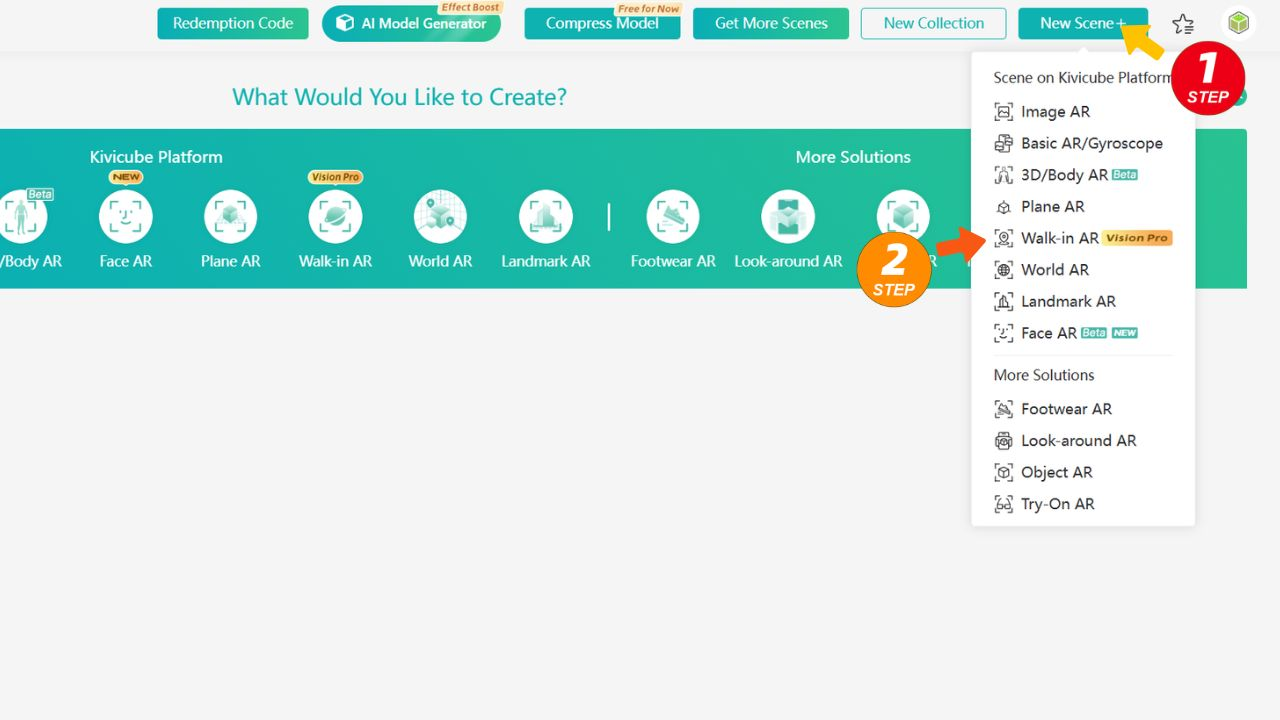 Click here to log in to the Kivicube platform. Create a new "Walk-in AR" scene and complete the production using the visual editor.