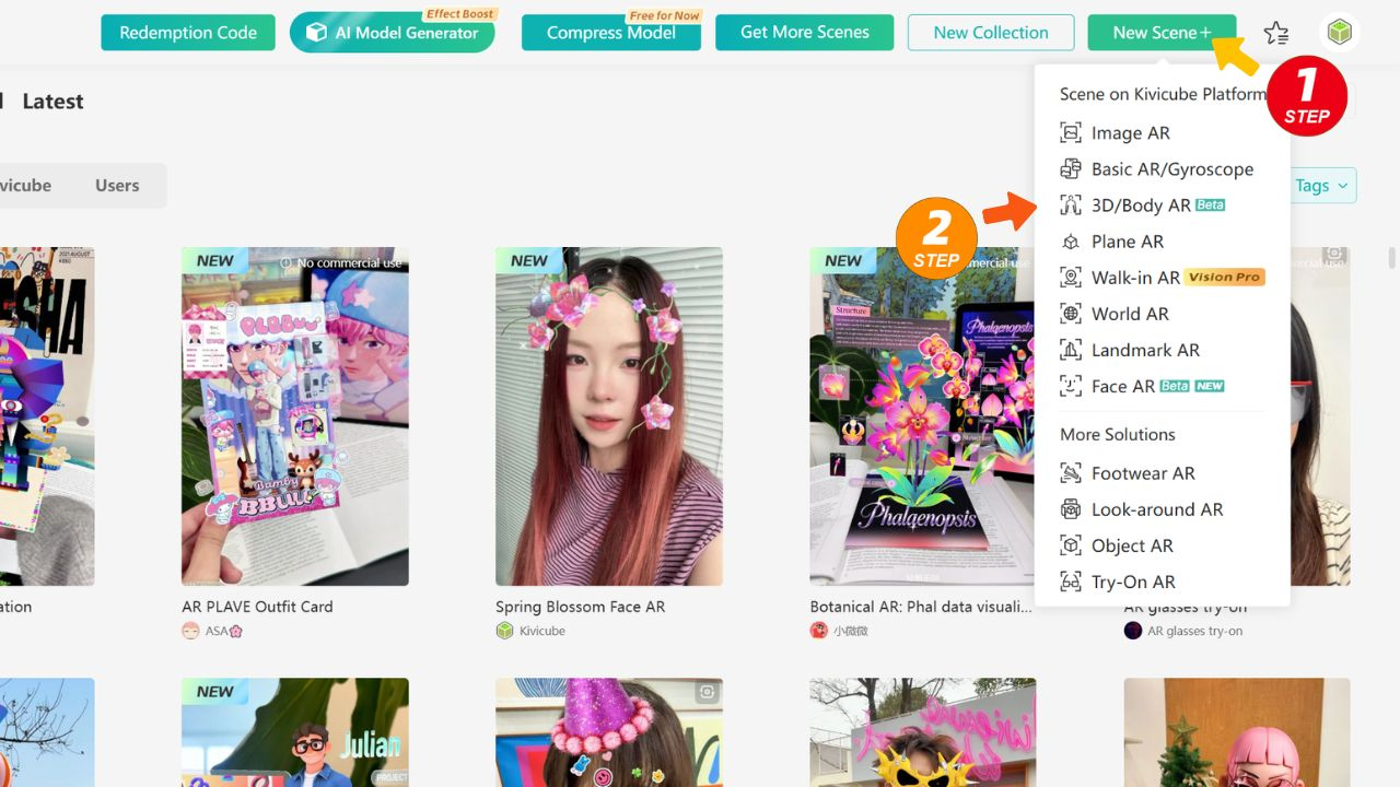 Click here to log in to the Kivicube platform. Create a new "Body AR" scene and complete the production using the visual editor.