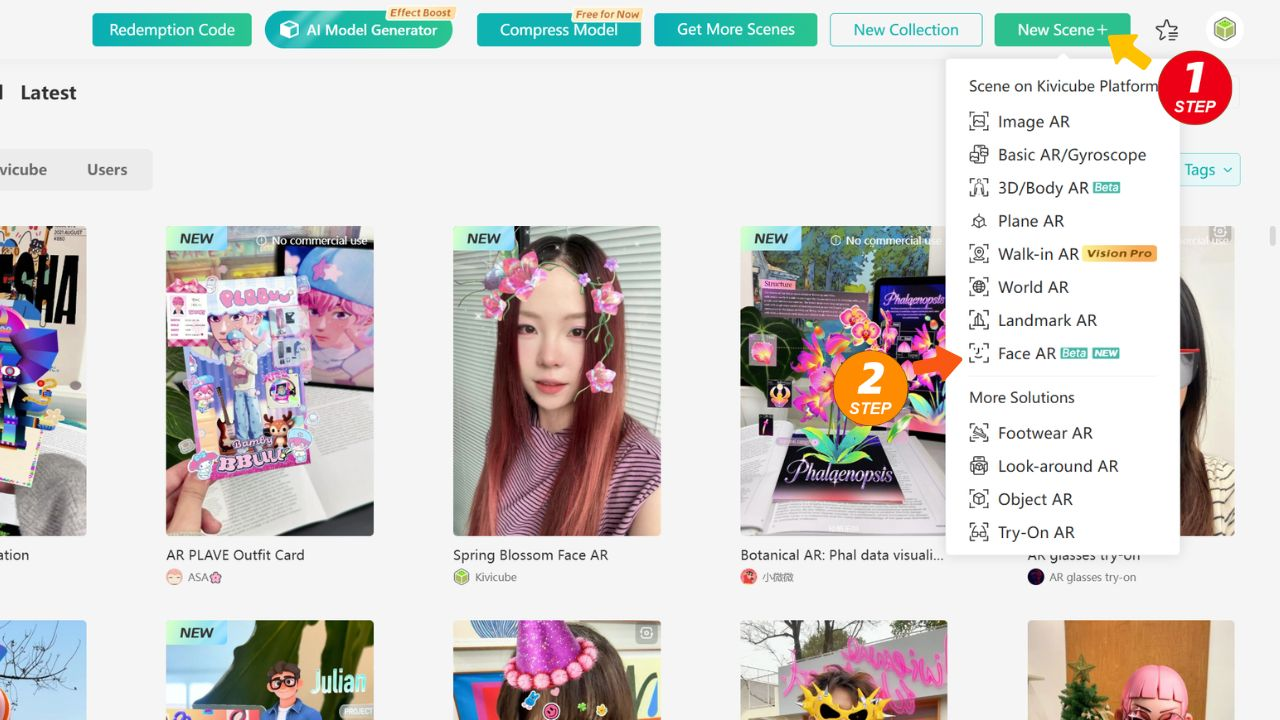 Click here to log in to the Kivicube platform. Create a new "Face AR" scene and complete the production using the visual editor.