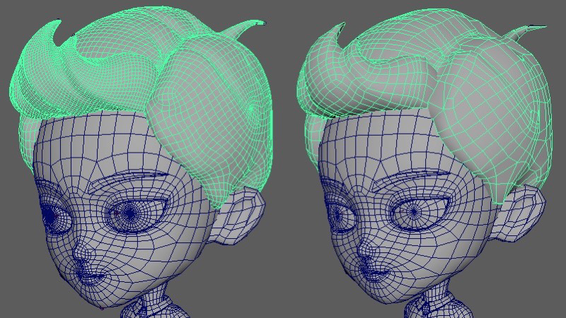 (a)下图是面数过多与面数正常的示意(左边面数过多,右边面数正常)