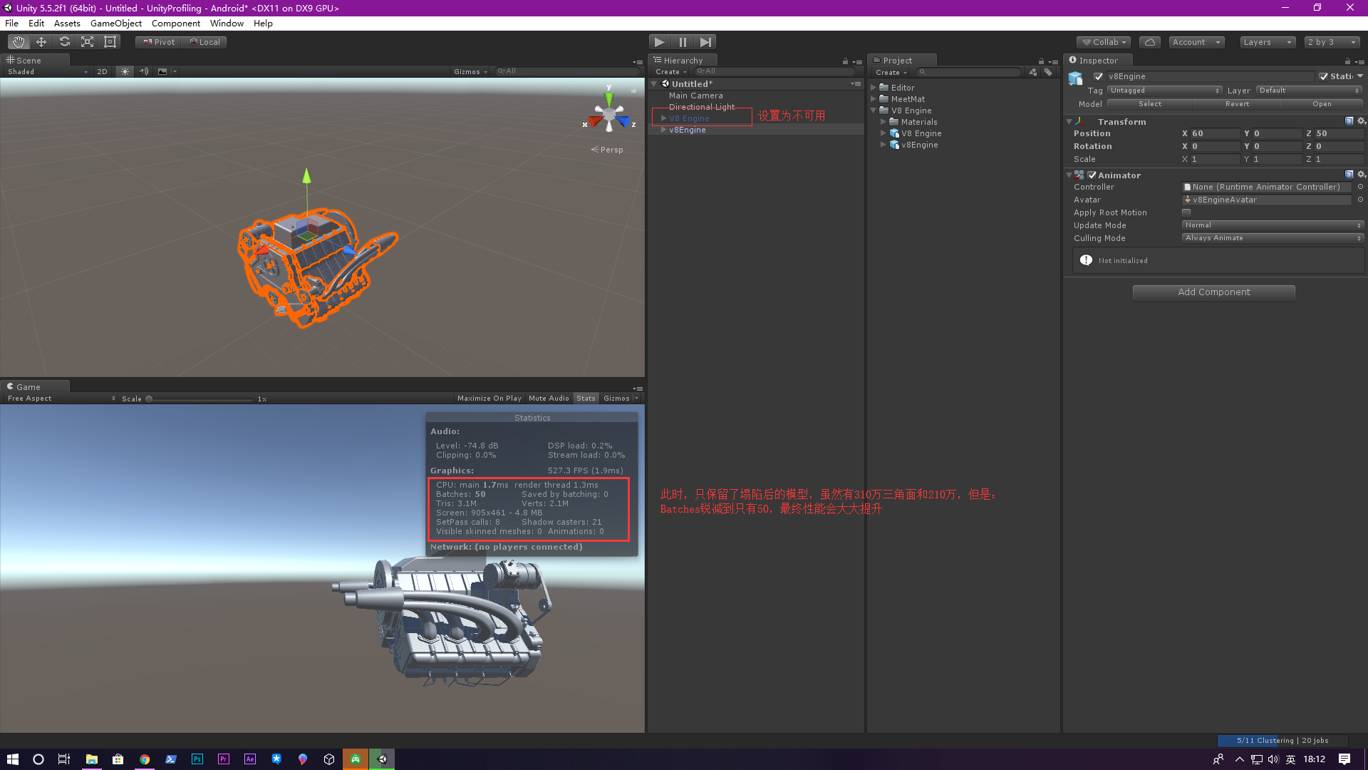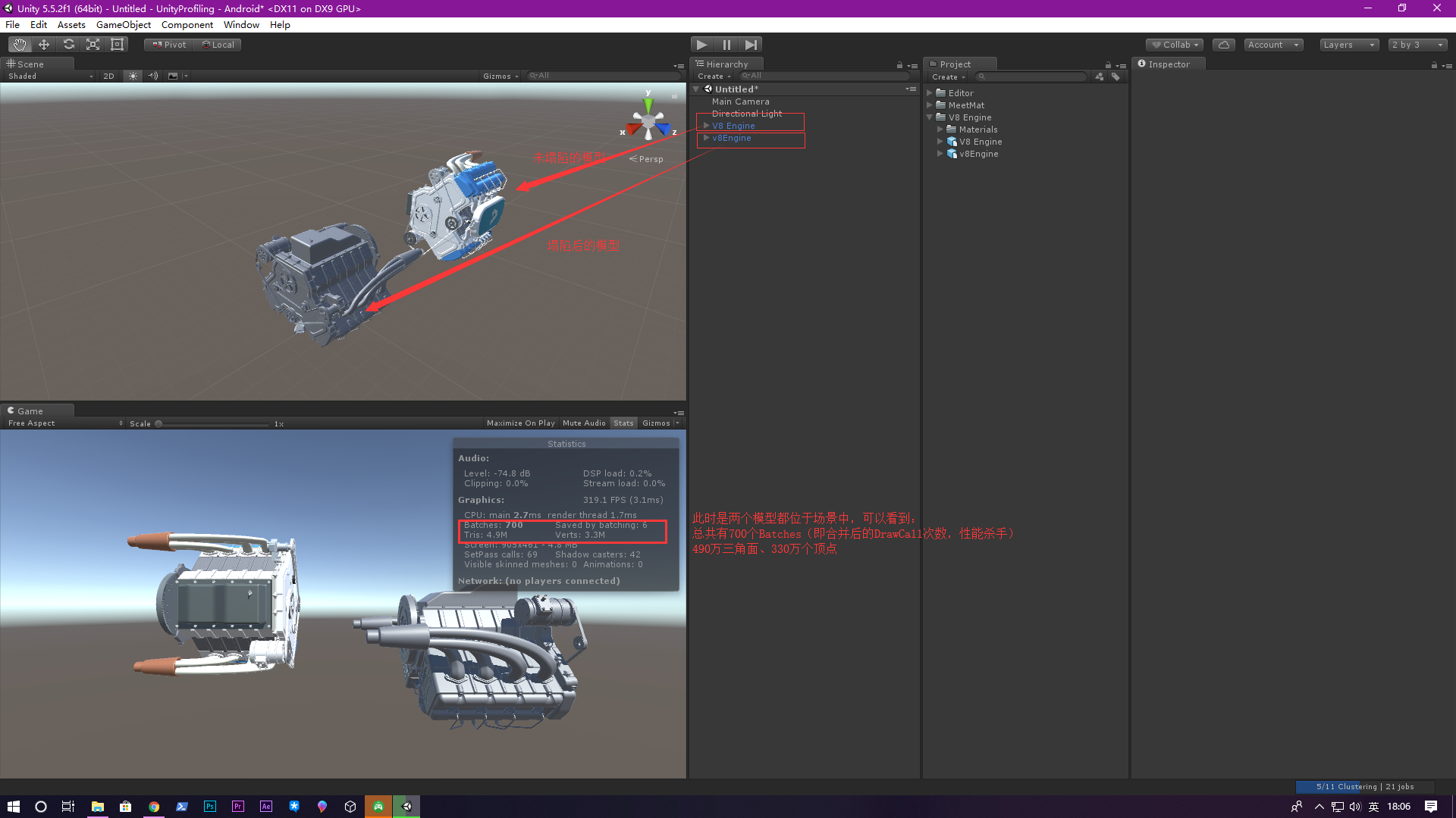 下面举例说明模型使用塌陷前后,分别的性能状况: