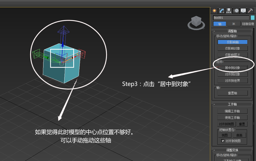 如下图所示,物体的中心点不在建模工具坐标系原点,并且模型中心点位于模型合适的位置