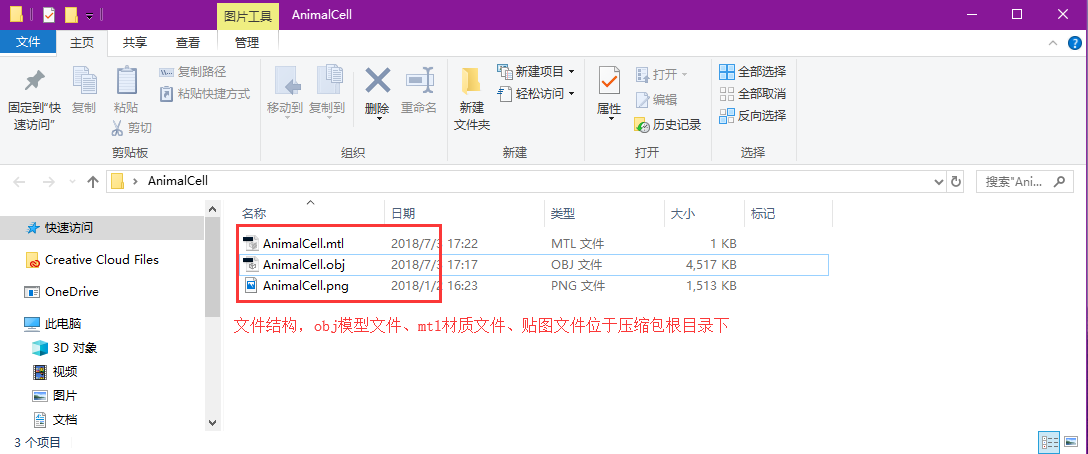 针对obj文件,需要将.obj、.mtl、贴图文件压缩成zip上传,请参考下图:
