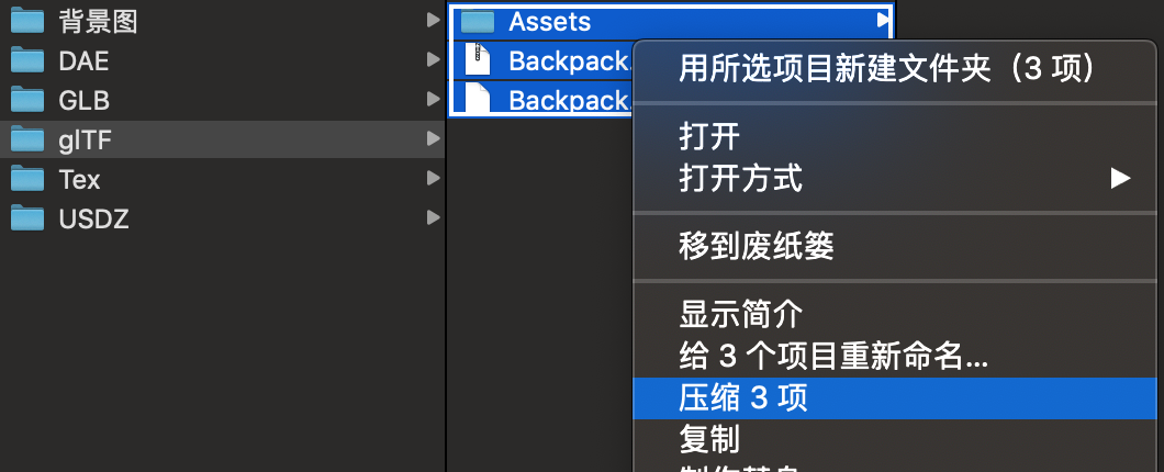 针对gltf文件,需要将将.gltf, .bin与__贴图文件压缩成zip上传;