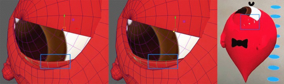 左边:穿插;中间:未穿插;右边:穿插部分显示混乱;