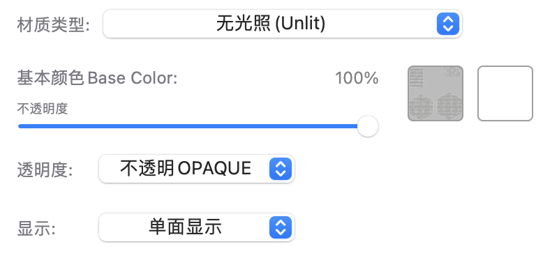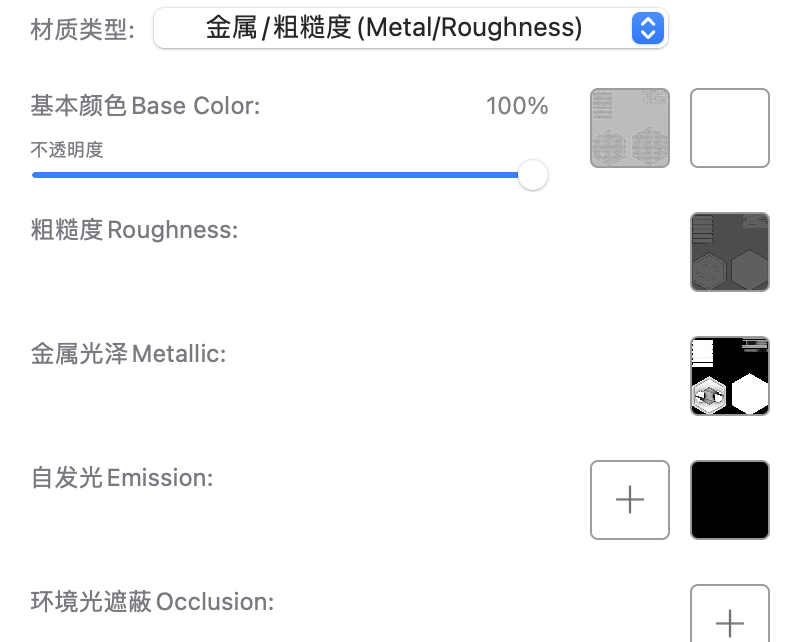 macOS版支持金属/粗糙度与无光照Unlit两种材质类型设置,在线版目前暂时只支持金属/粗糙度类型