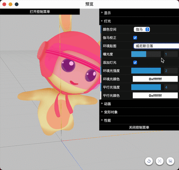 | 在线版 | 不能设置灯光,因此编辑器与实际程序体验有差异是正常现象 | 不能设置灯光,因此编辑器与实际程序体验有差异是正常现象 | + 可以自己设置环境贴图 + 注意:这里面的环境贴图是hdr格式,会显得暗一些 |