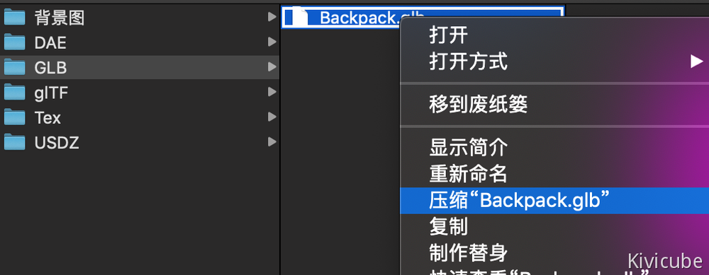 | 第二步: 将模型文件压缩为zip格式 | glb格式: |