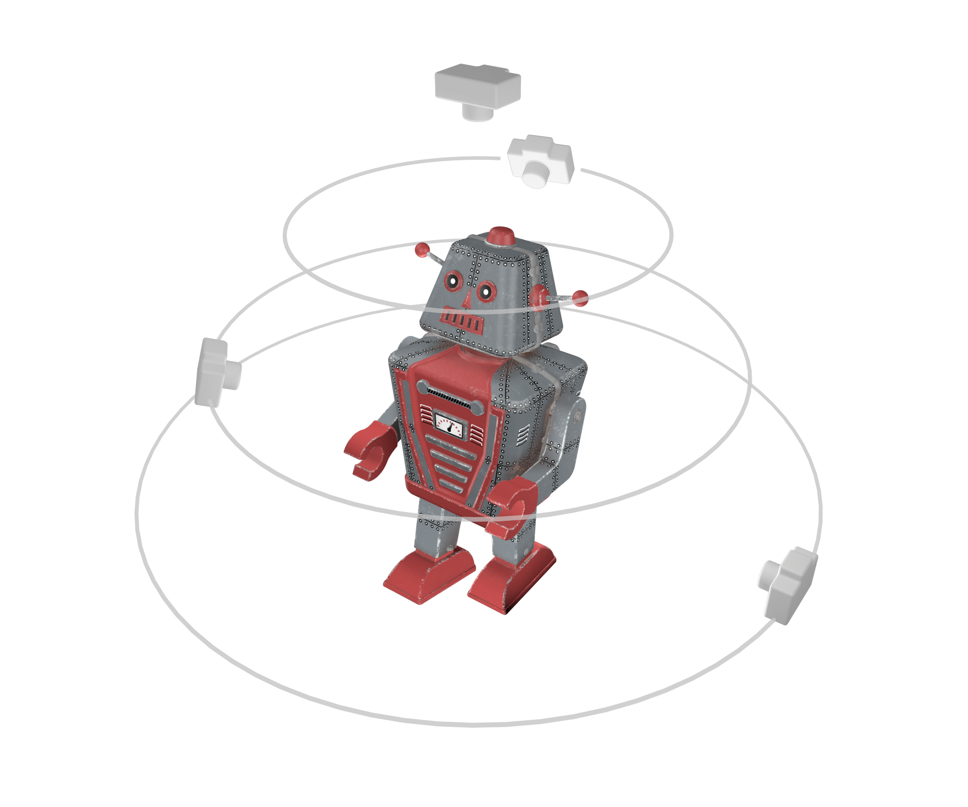 如下图,展示了物体所需拍摄的角度,需要明白为什么需要尽可能的采集多一些角度,只有程序收集到各个角度的图像数据,才能很好的生成效果,如果存在一些角度图像数据缺失,程序就会计算一些无效数据,导致模型出问题。