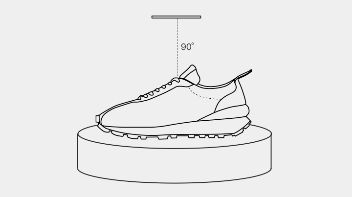 4.鞋子侧放,手机0°~15°,转盘转动一圈拍摄18~36张