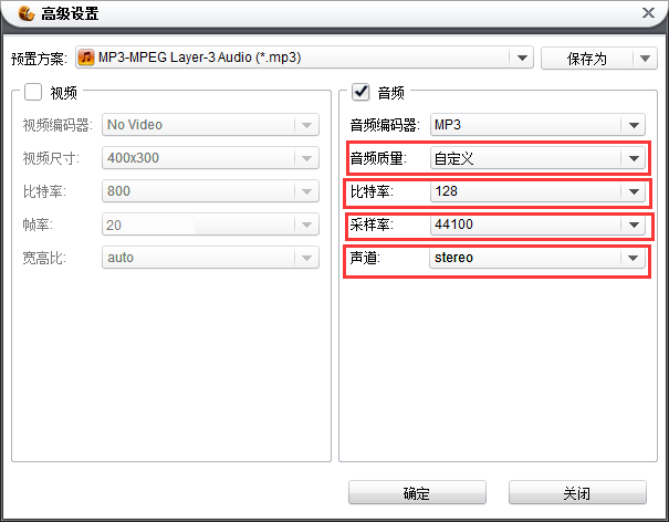 一般来说使用标准音质的音频比特率:即128kbit/s;
