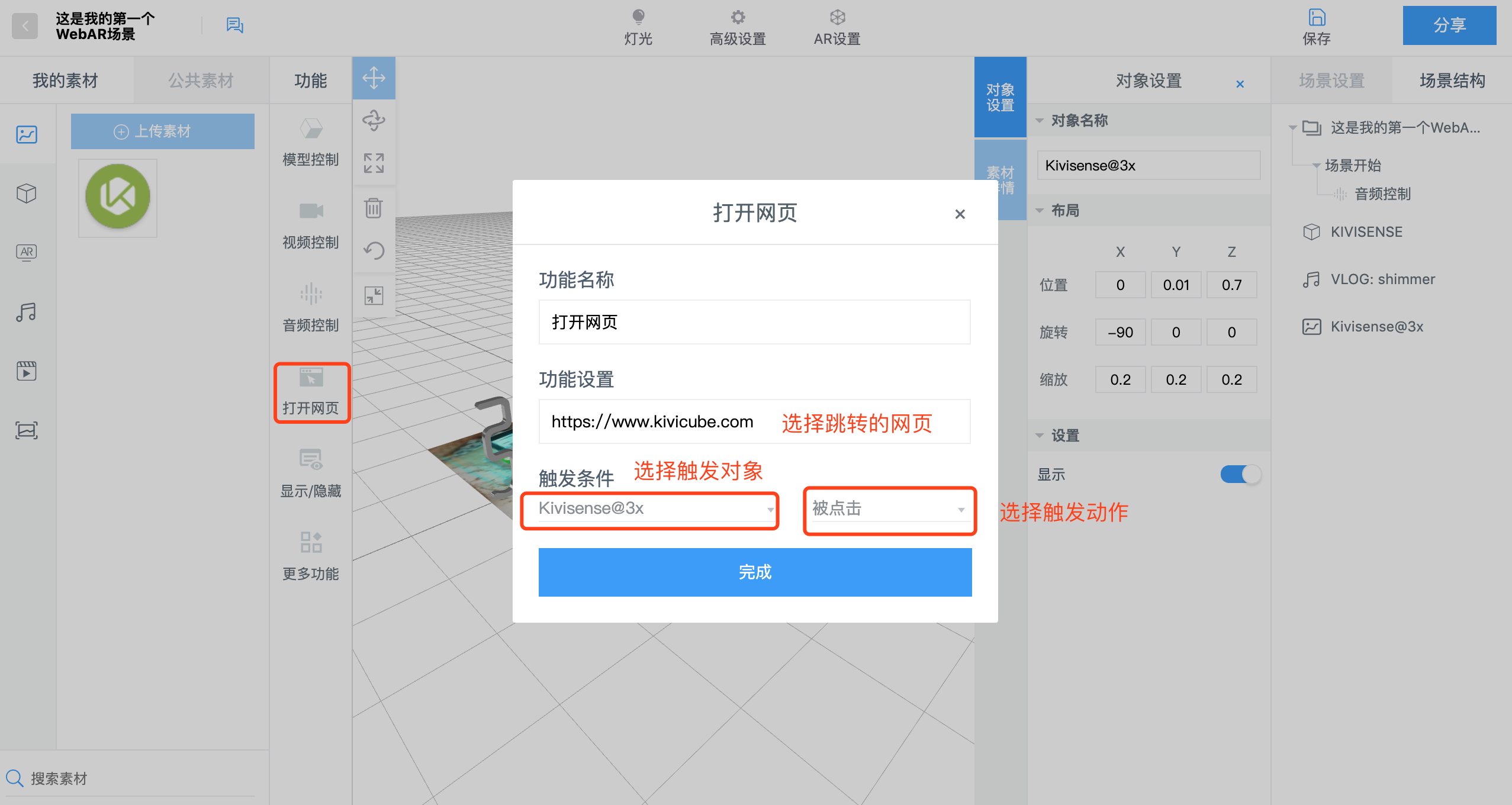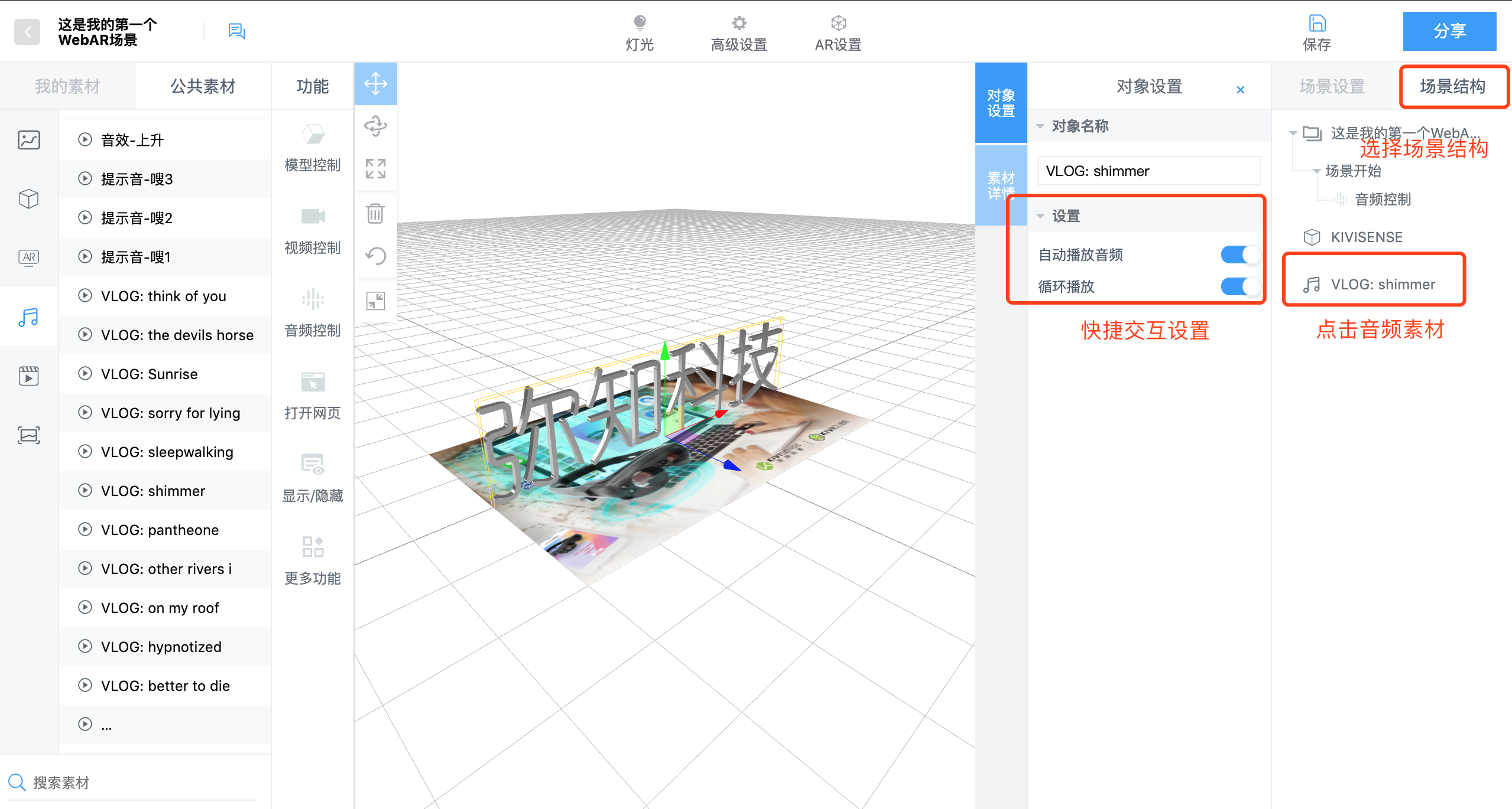 也可以通过快捷入口设置素材的交互