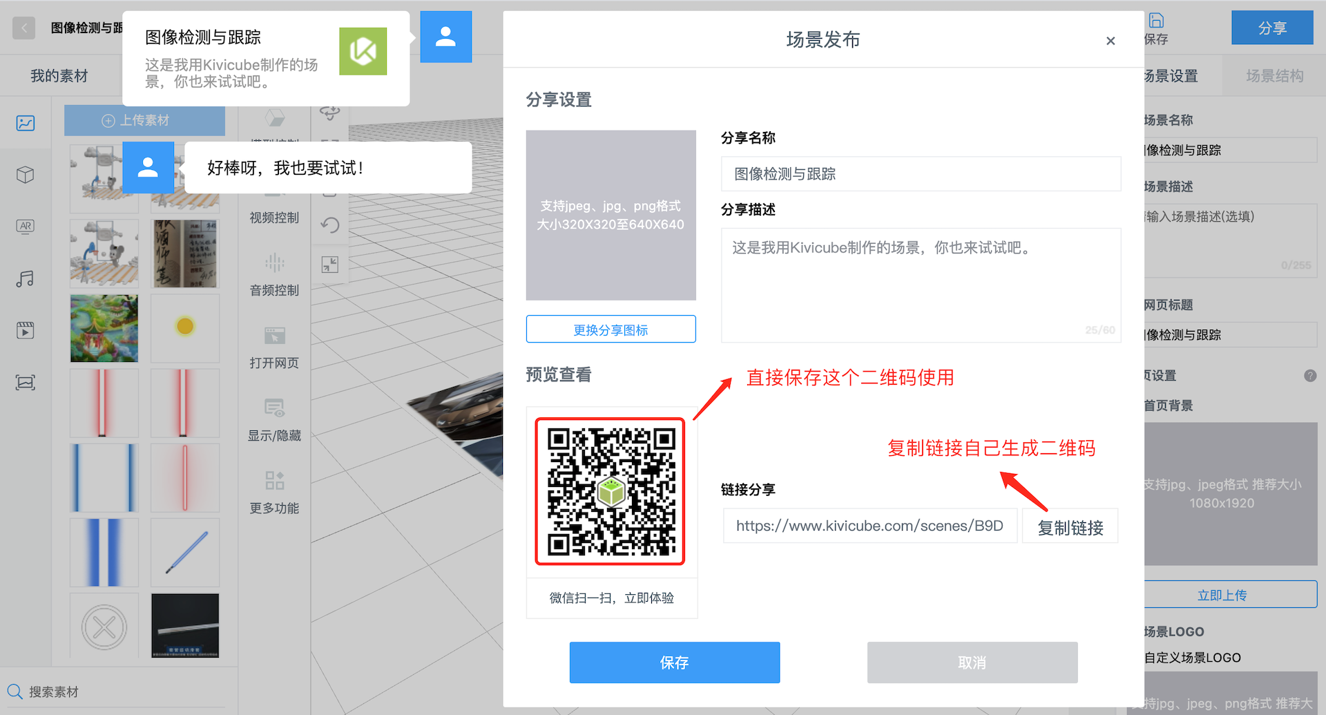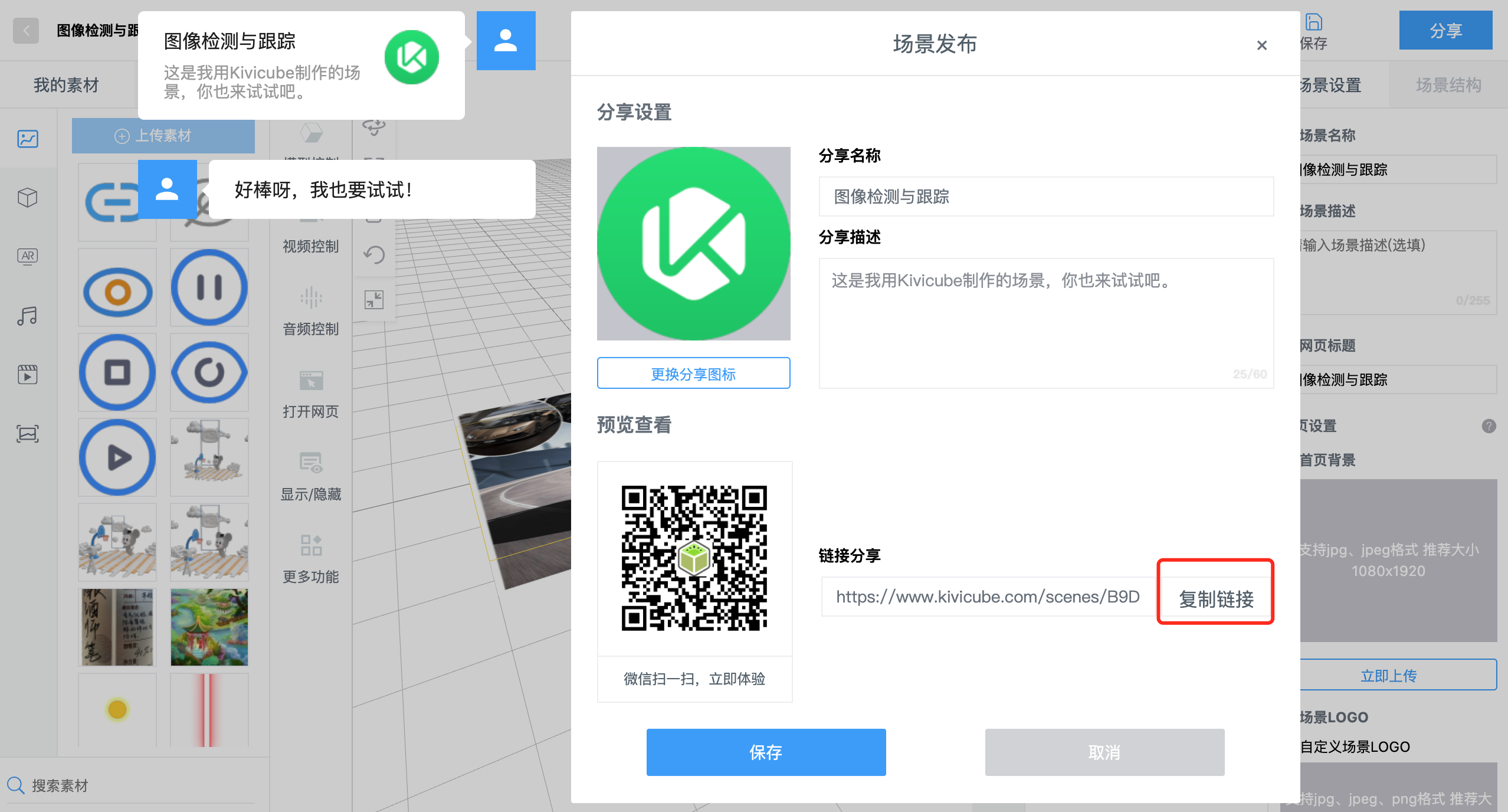 您可以为你的每一个Kivicube场景生成一个小程序码。