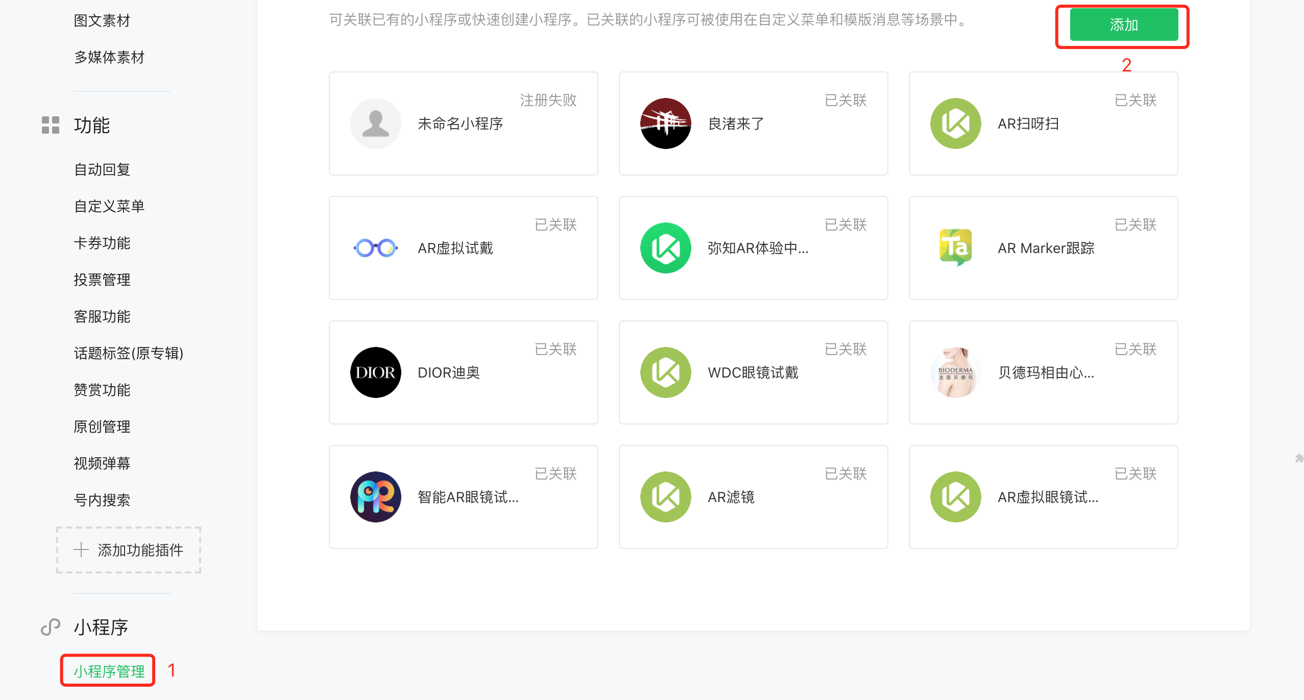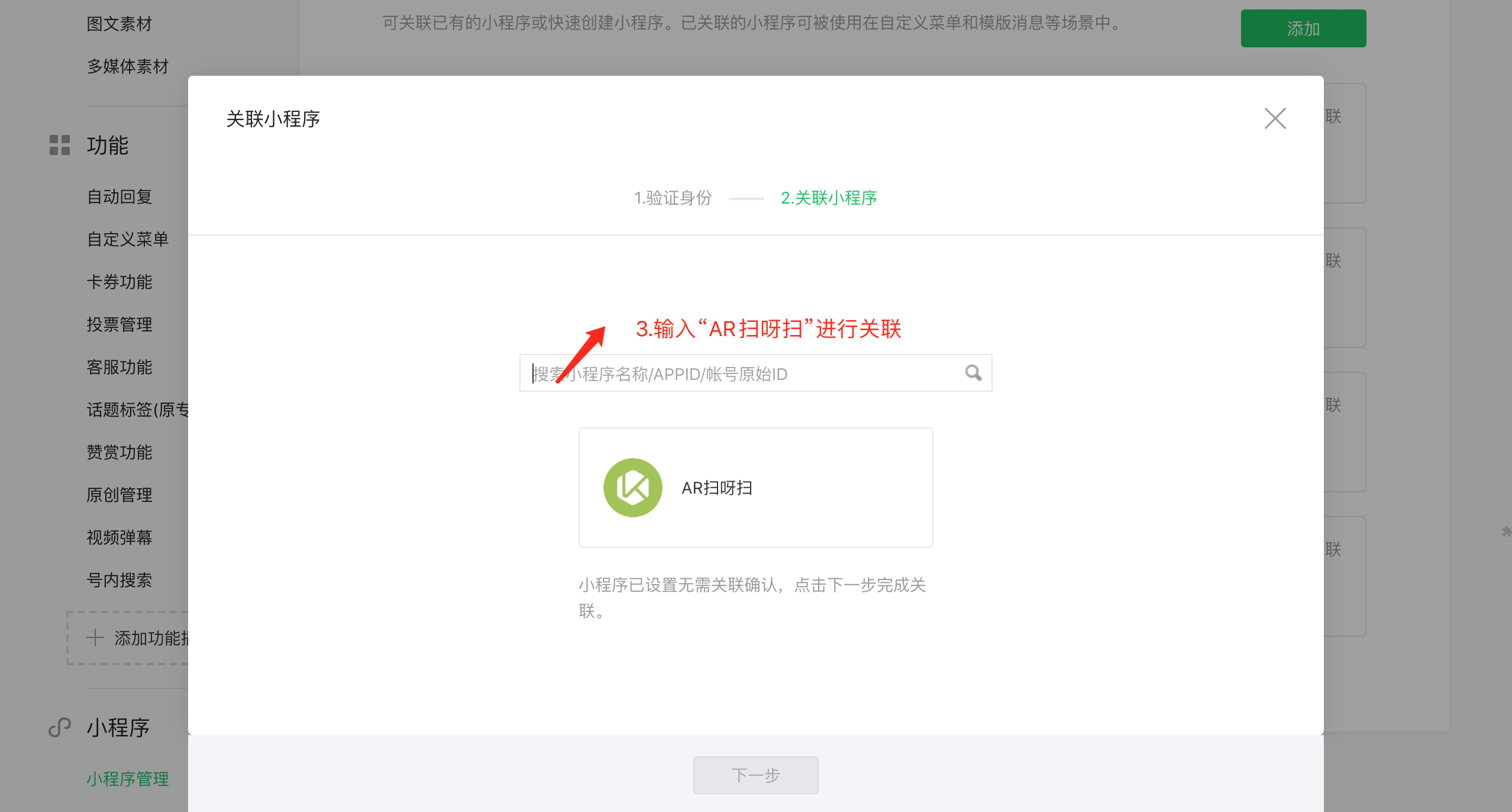 ① 公众号关联小程序