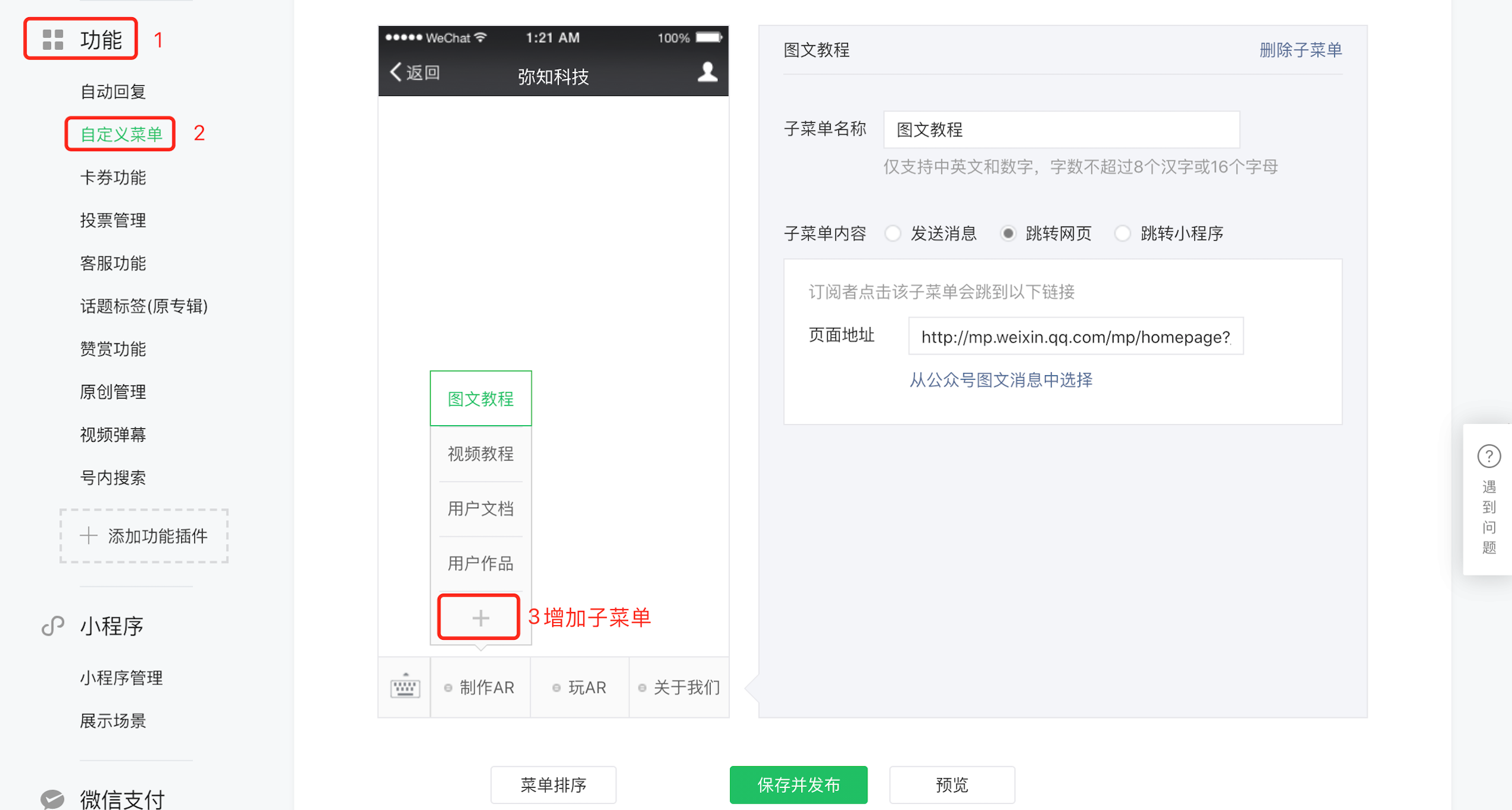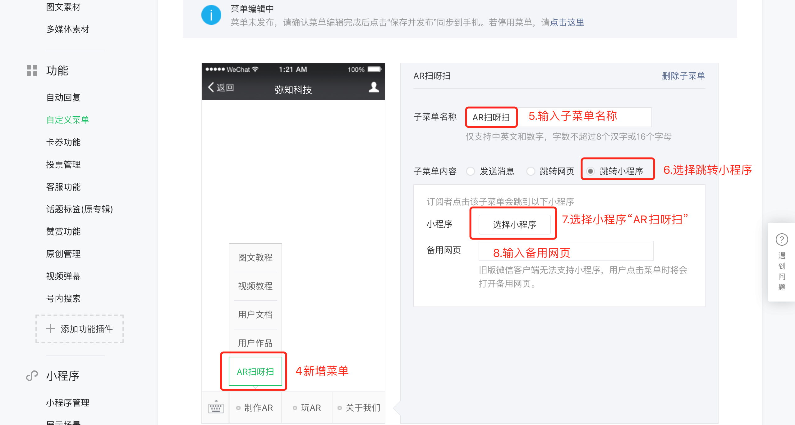 ③ 新增跳转小程序菜单