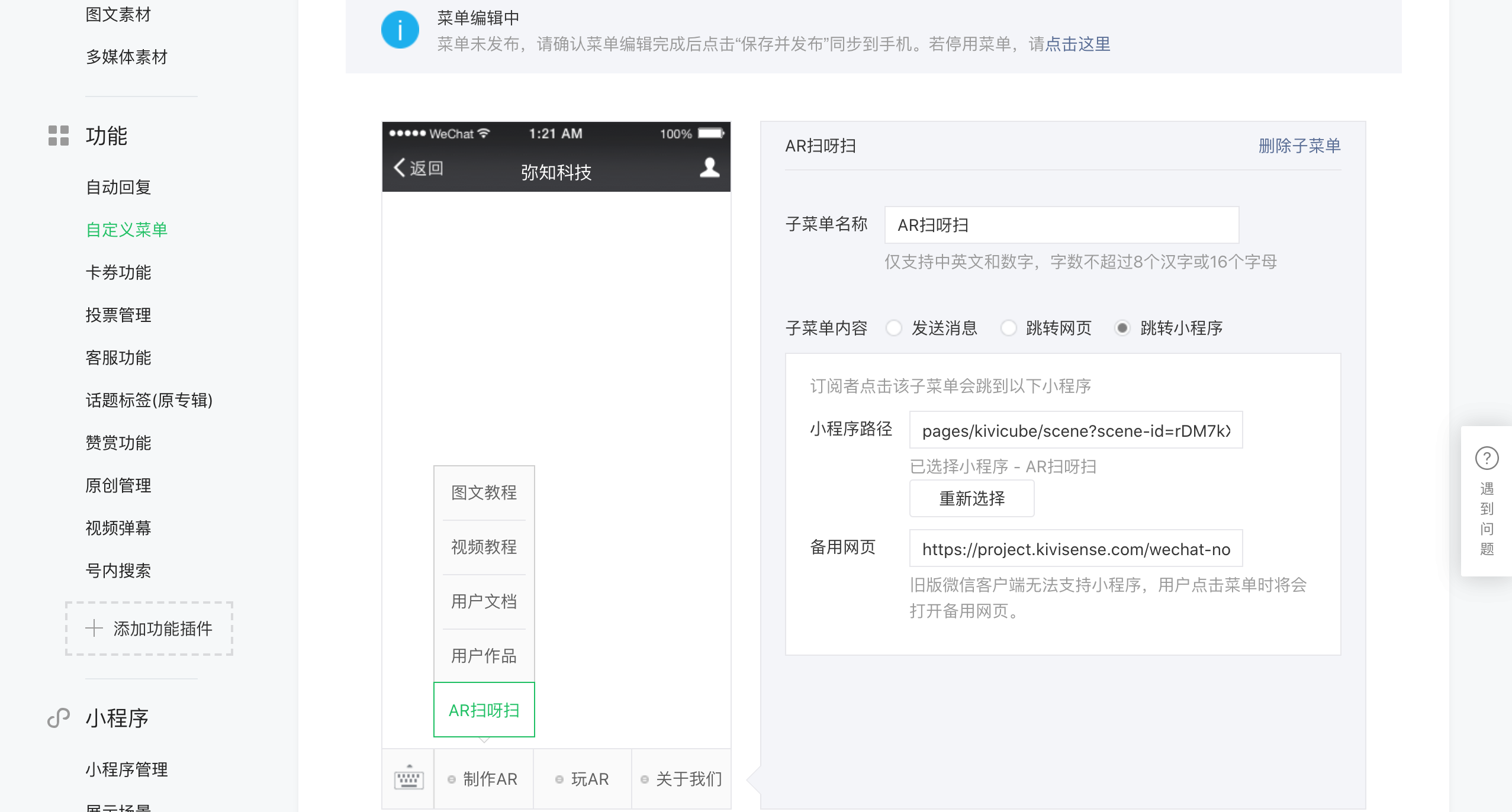 首先,熟悉Kivicube对微信小程序支持功能