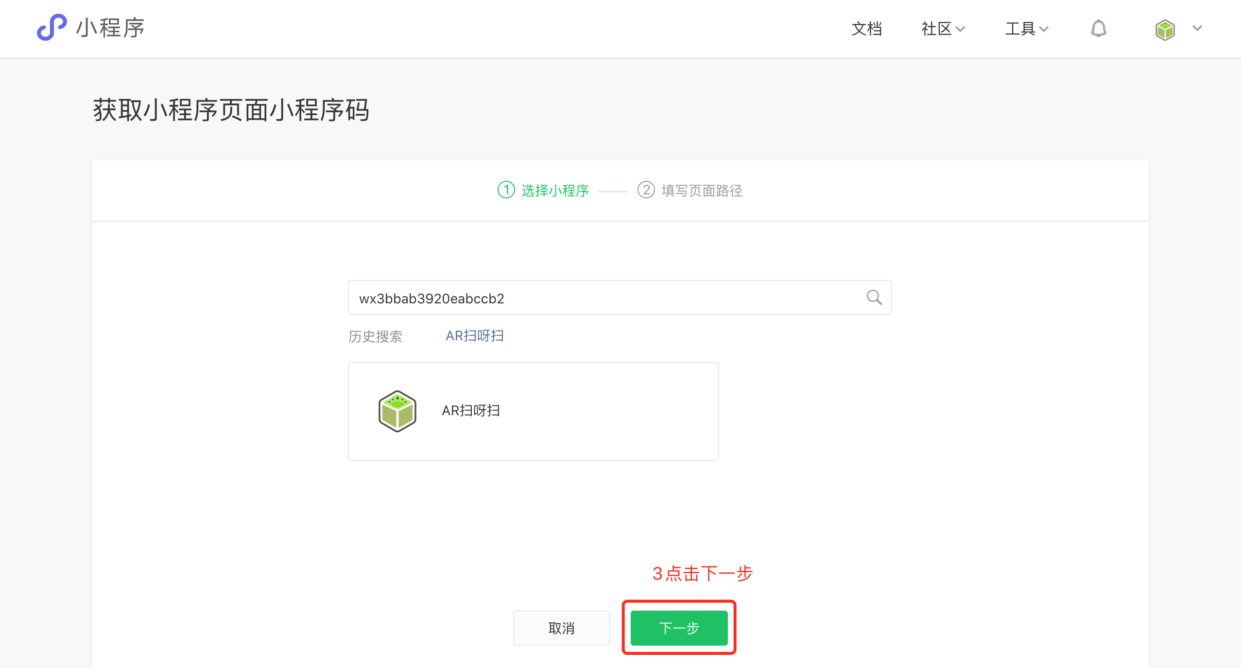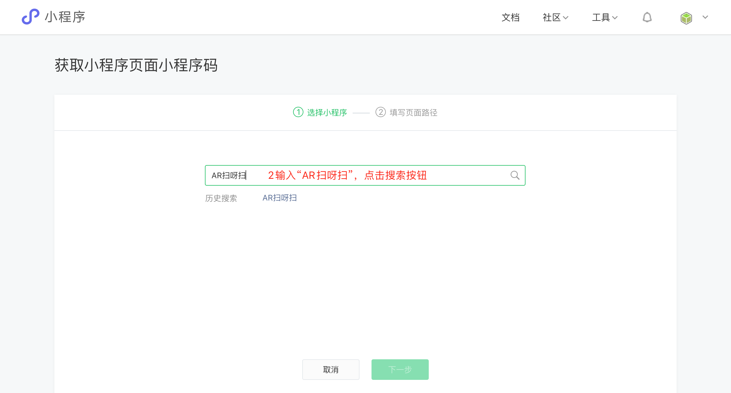① 使用微信搜索小程序“AR扫呀扫”