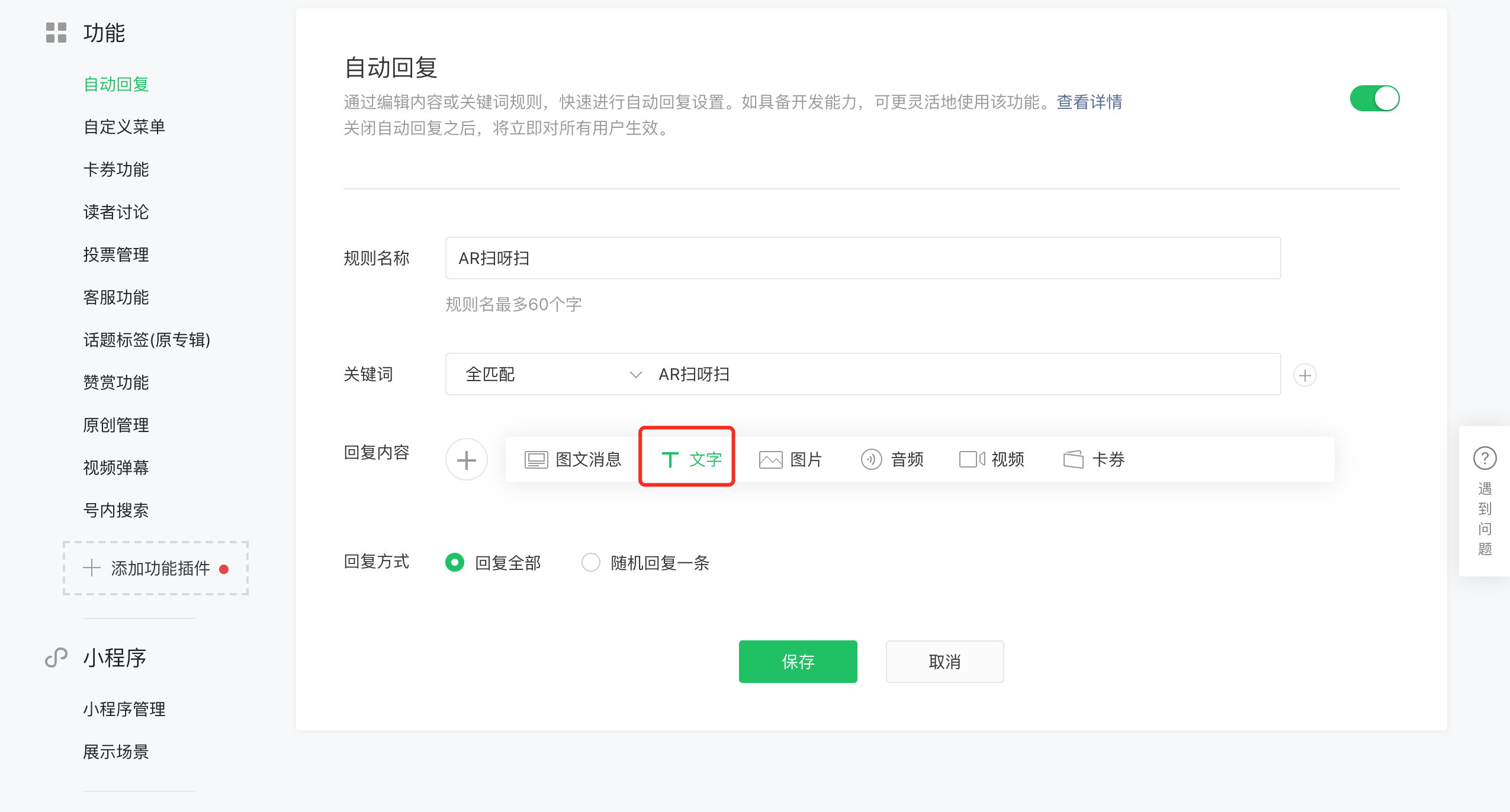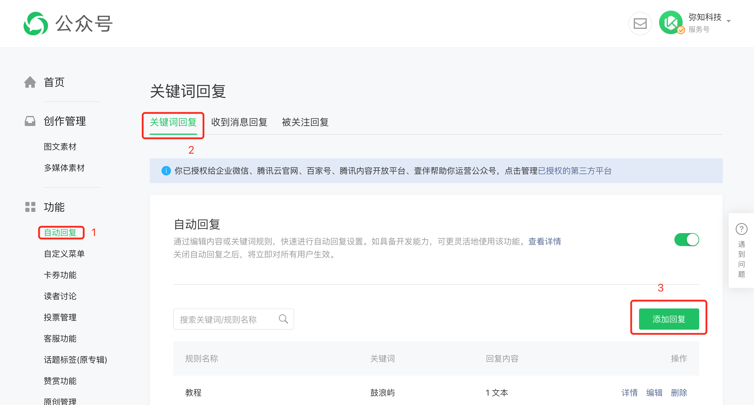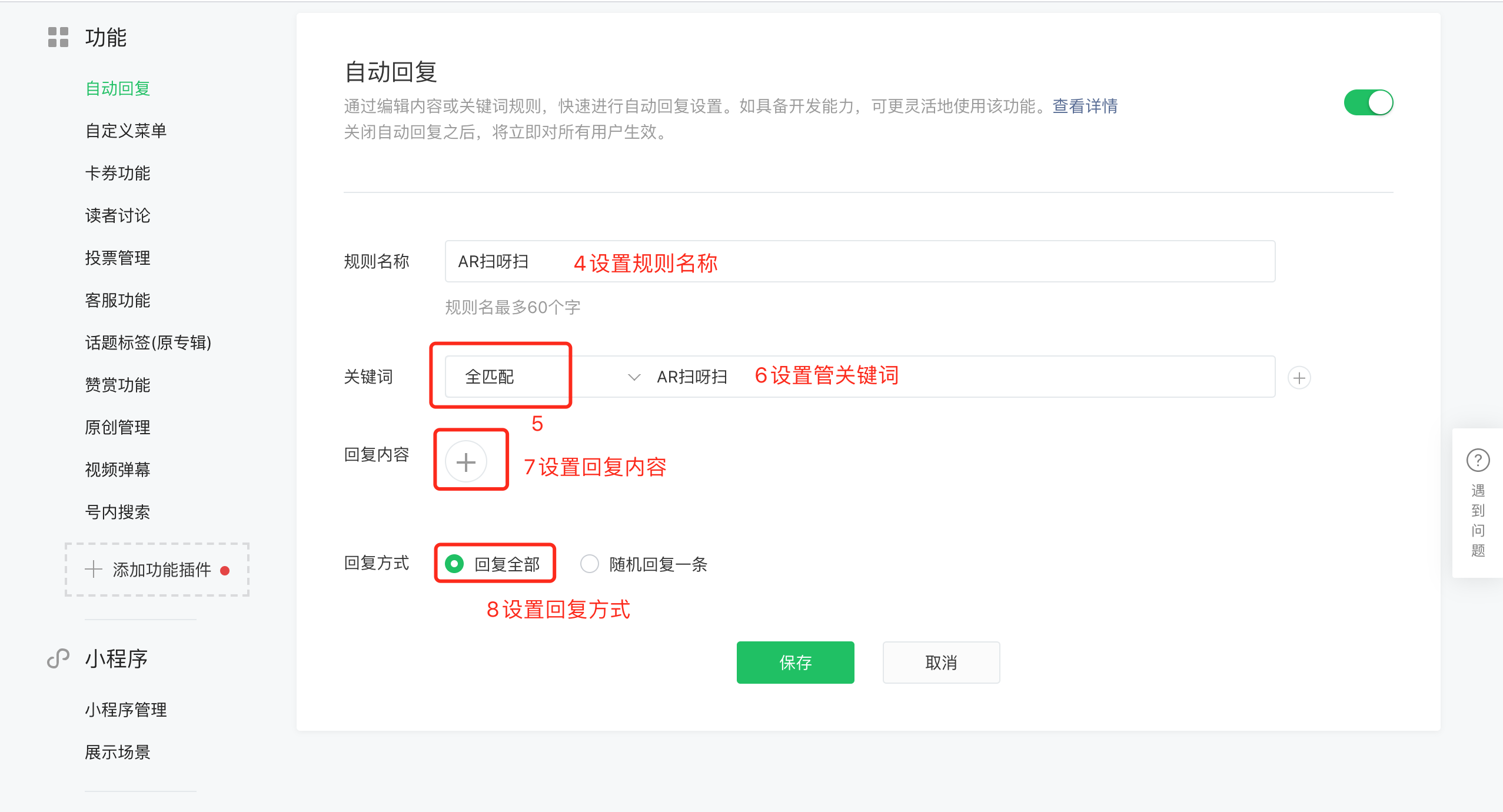 ② 设置关键词回复