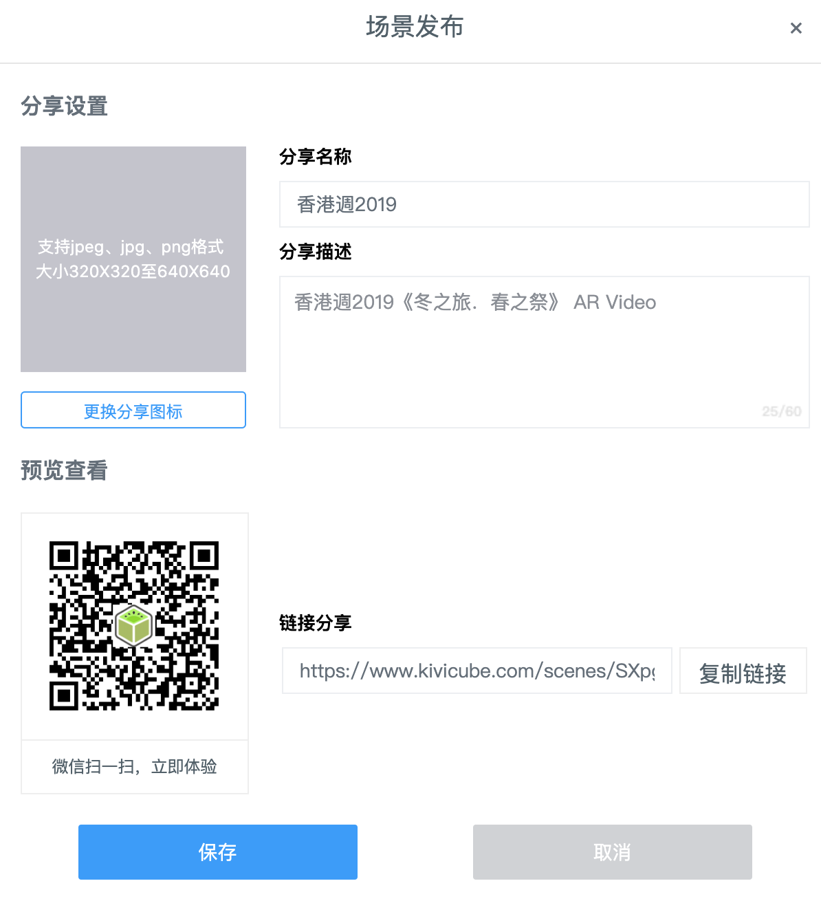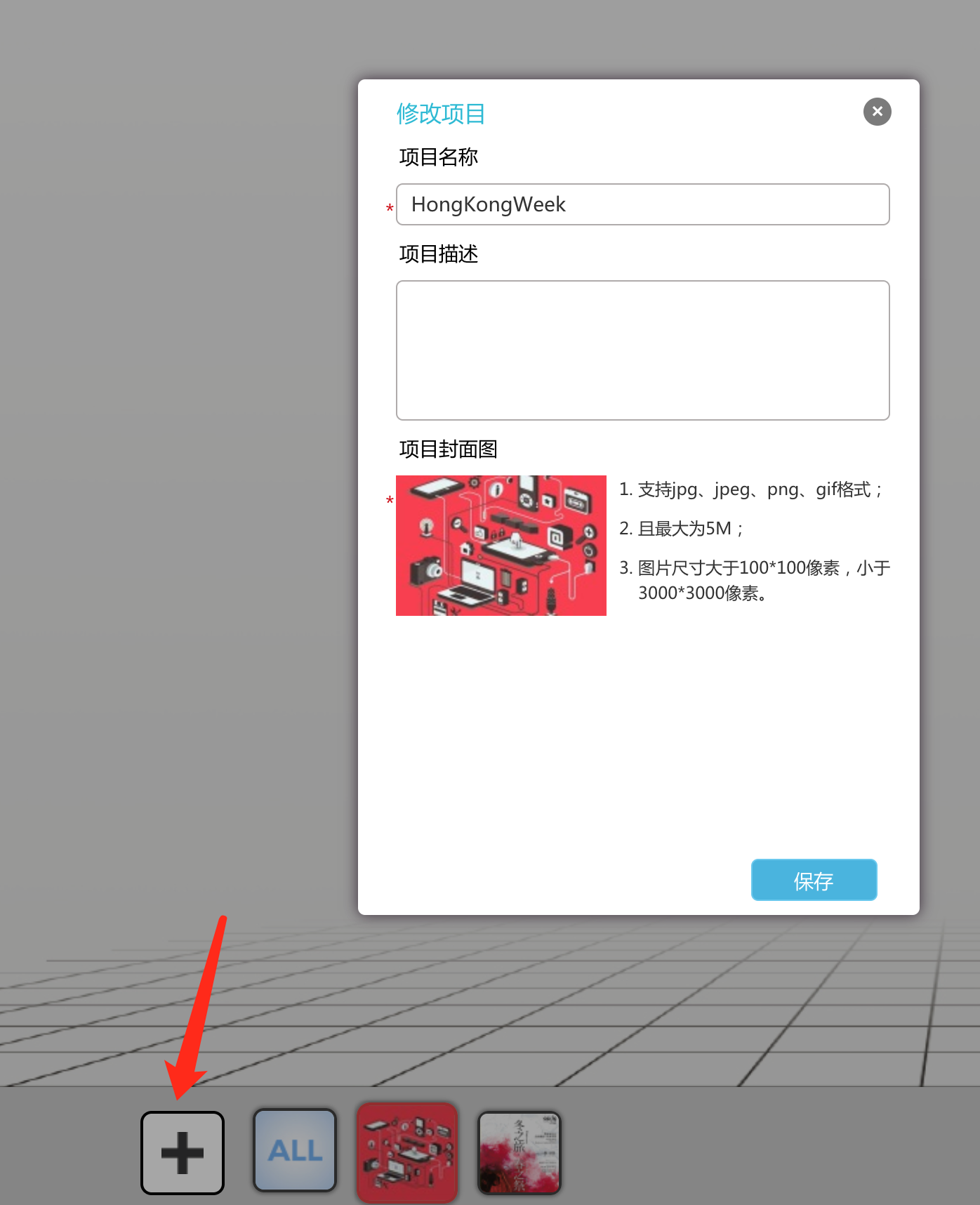 - 一个项目中可以有若干个不同的AR扫描场景,图像跟踪的项目中,一个场景对应一张图。用户开始正式制作商业项目的时候,最好可以新建一个专属的项目,并对应输入这个项目的标题、缩略图、简介。