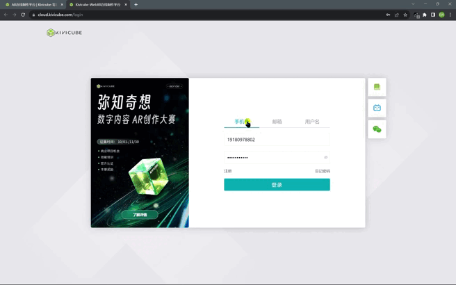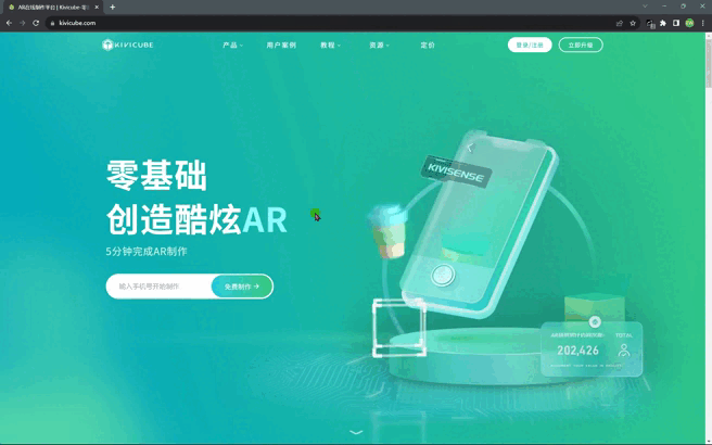 1、打开Kivicube AR在线制作平台,链接:https://www.kivicube.com