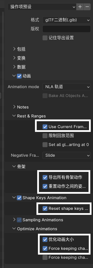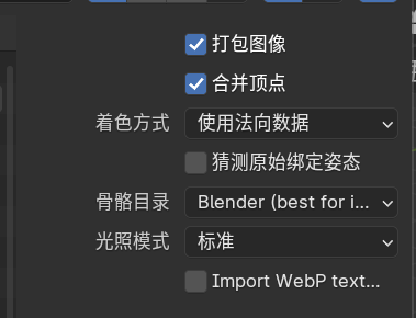 ![]() 2. 在建模软件默认的导出设置时候,骨骼中只有旋转与缩放,没有位置信息。导致在鸿蒙算法中出现偏移所致,建议导出时候将当前状态设置为初始状态,这样骨骼中就有位置信息了 3. 这里提供下blender导入glb并导出的设置可供参考 4. 导入 | |