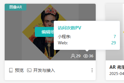 控制台中右下角可以查看场景的点击次数与使用人数,PV每小时更新一次,UV每24小时更新一次