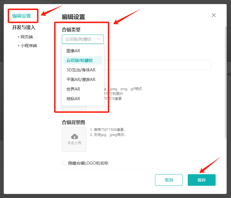 网页端的图像AR、图像AR合辑、云识别/陀螺仪、云识别合辑、3D互动、身体AR全部支持