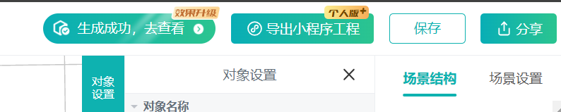 在场景编辑界面的右上角,点击【导出小程序工程】可以导出简易的工程文件,目前个人版以上版本用户支持
