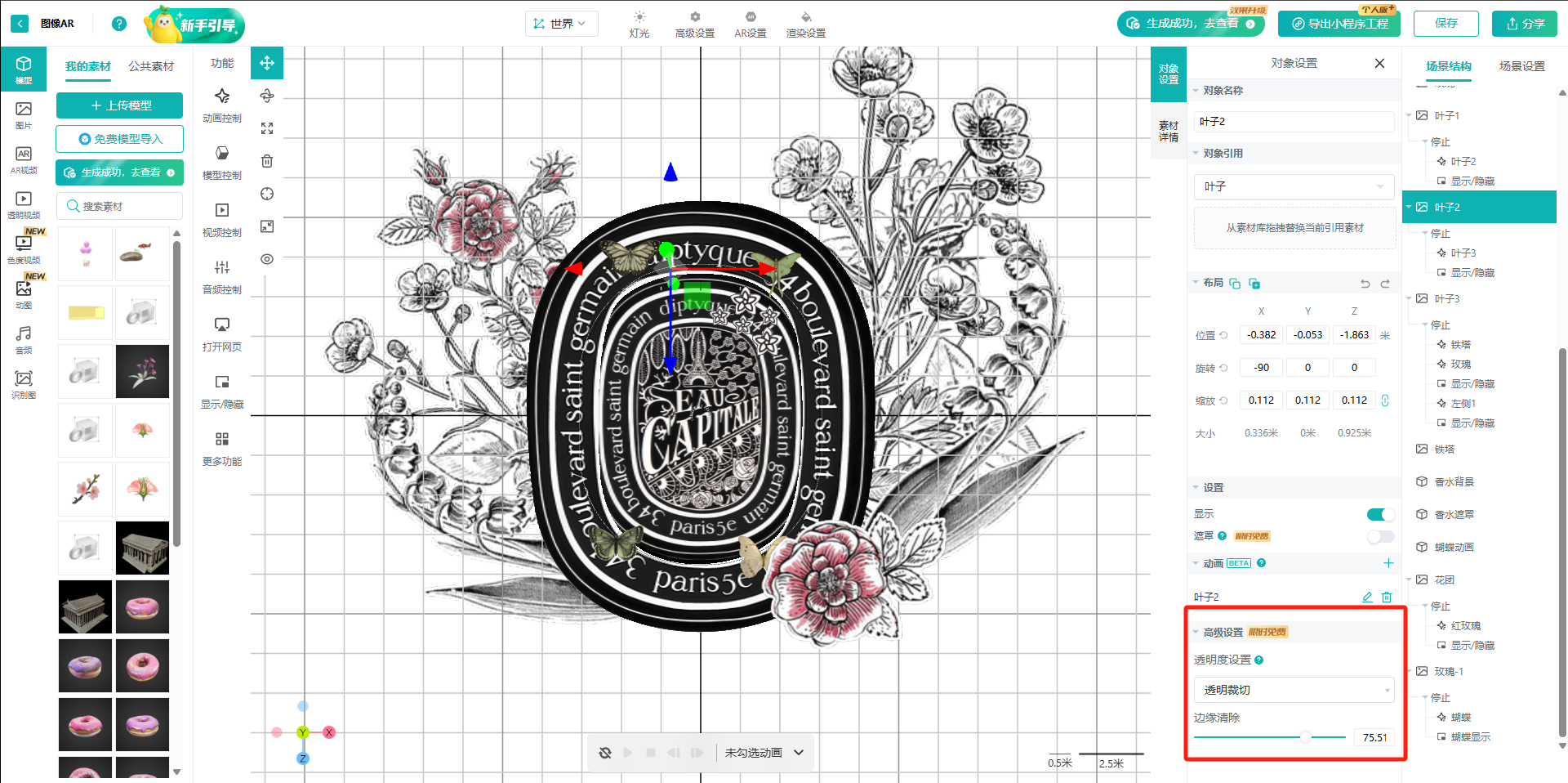 出现该问题的原因:在线版AR编辑器和kivicube平台引擎不同,显示自然会有差异,具体要怎么调节可以参考灯光与环境设置