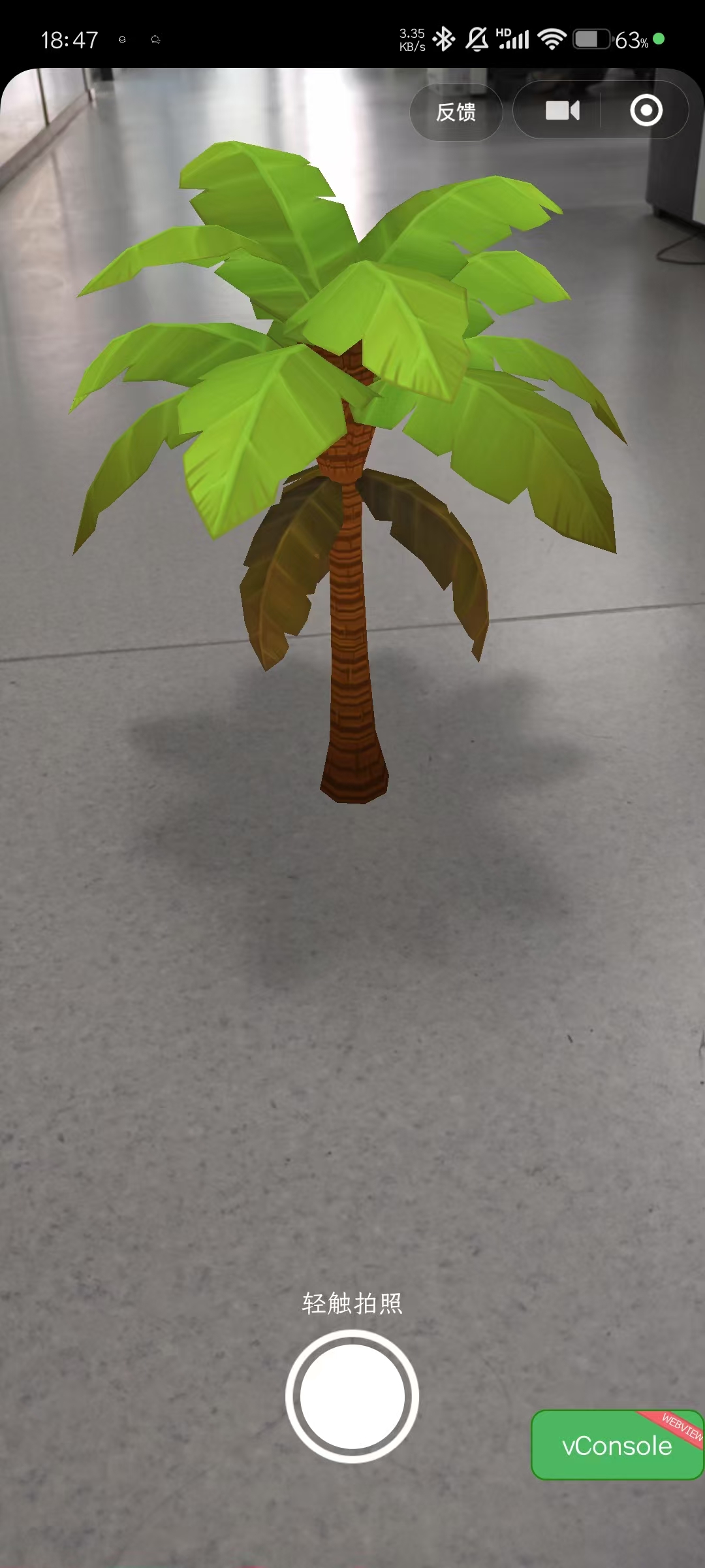 使用一个长条状模型作为案例,平面ar场景会将整个场景的最低边作为整个场景的地面,在场景中存在阴影时地面会更加明显