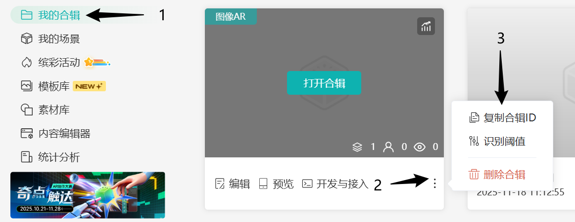 与上一问题相同,同一合辑下仅支持场景中每一个场景都有自身独有的识别图,否则会有相互影响的风险!!