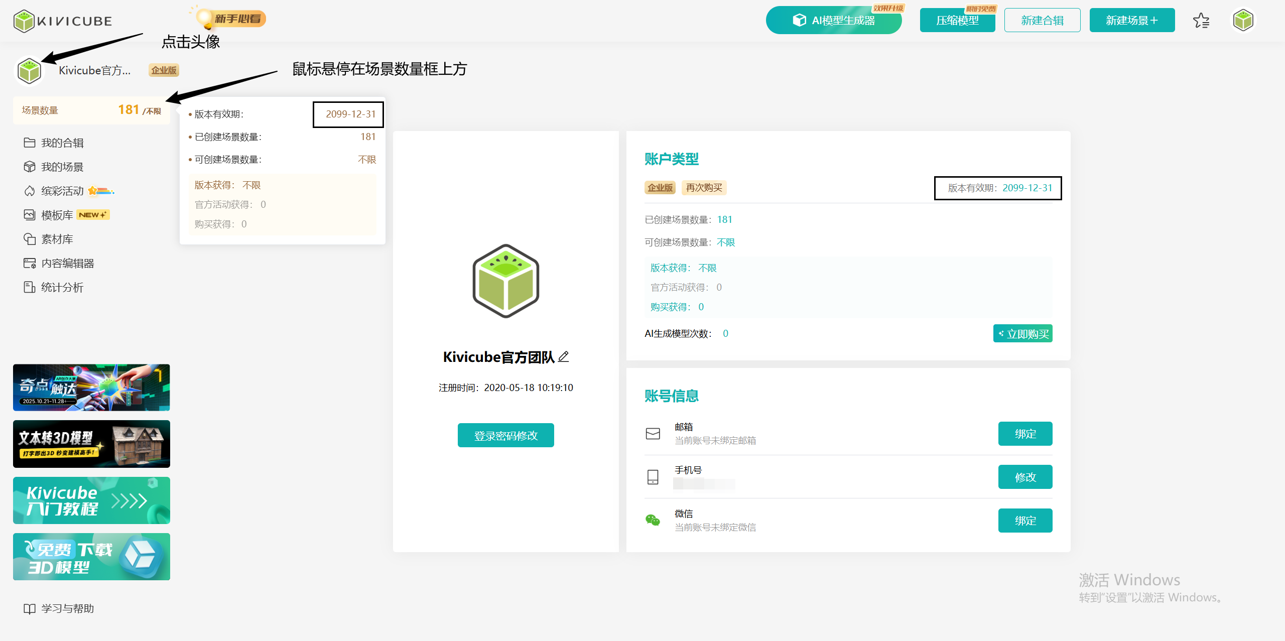 Kivicube定价:免费基础版,个人版,高级版,企业版方案