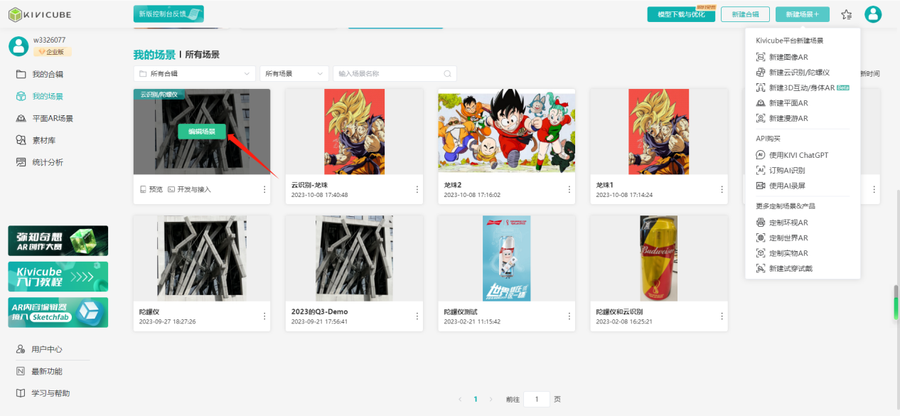 选中需要编辑的AR场景,点击“编辑”即可进入场景编辑器进行场景编辑。