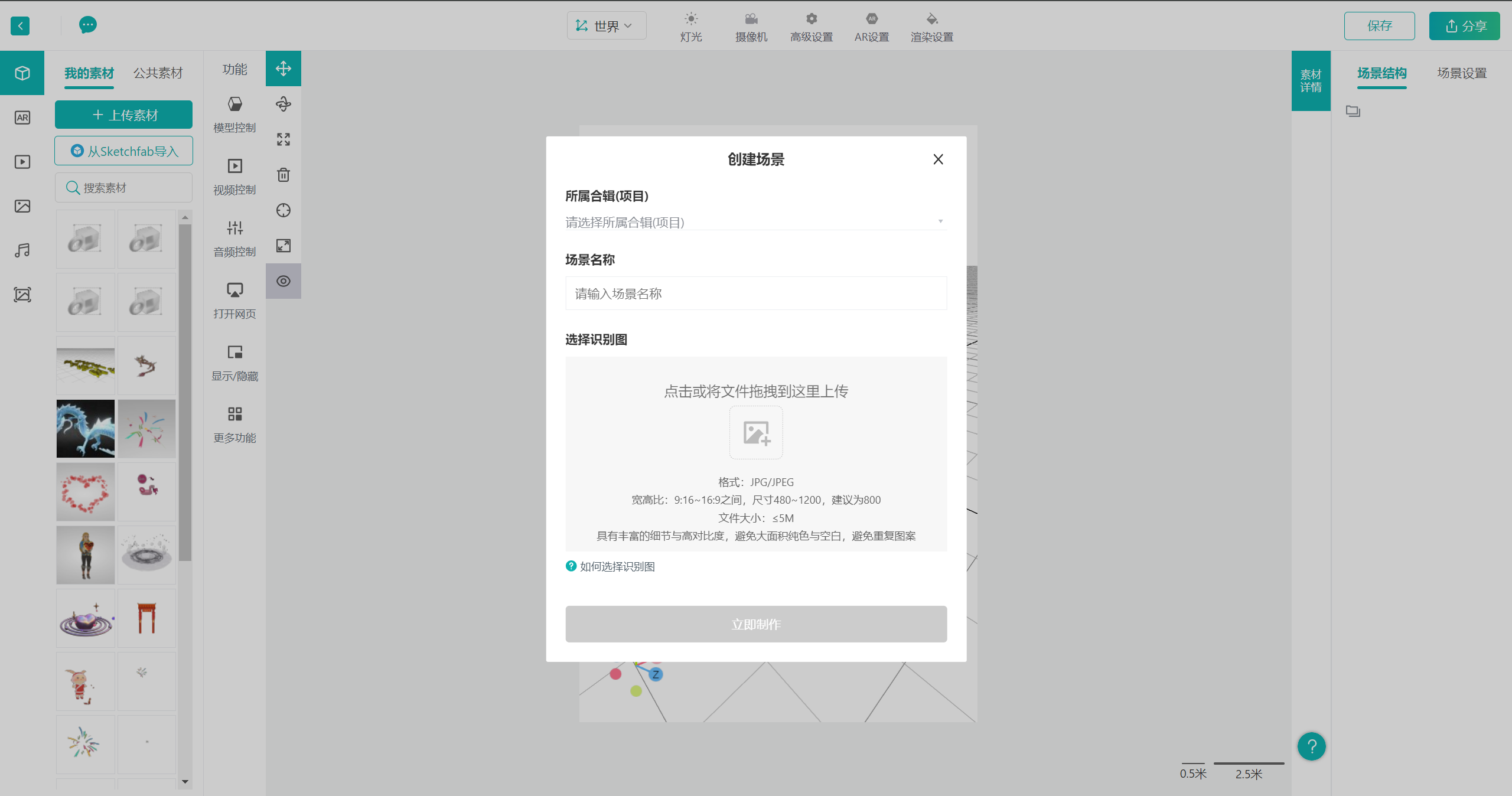 (1)点击新建场景,选择需要创建的AR场景类型,进行场景创建。