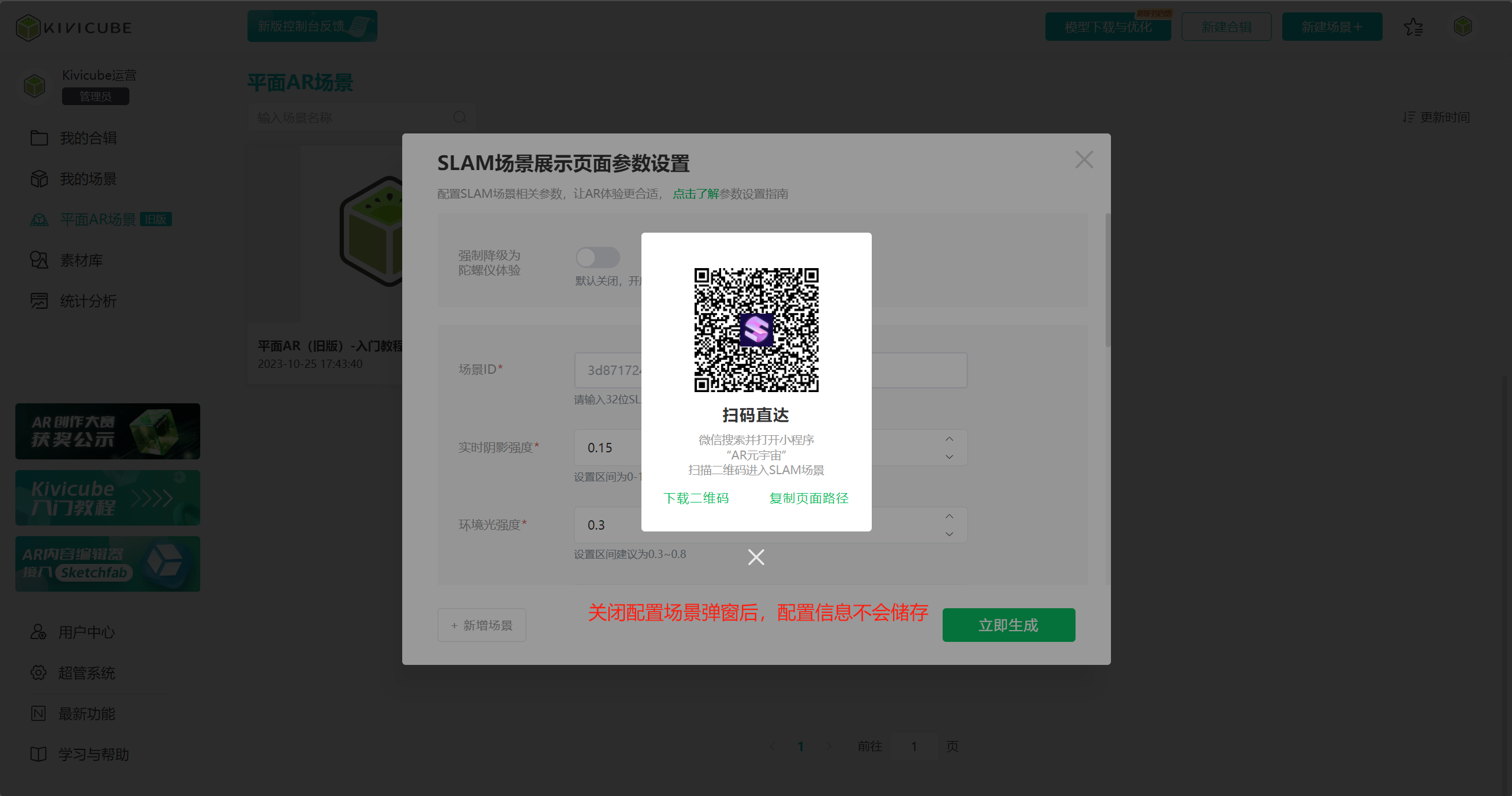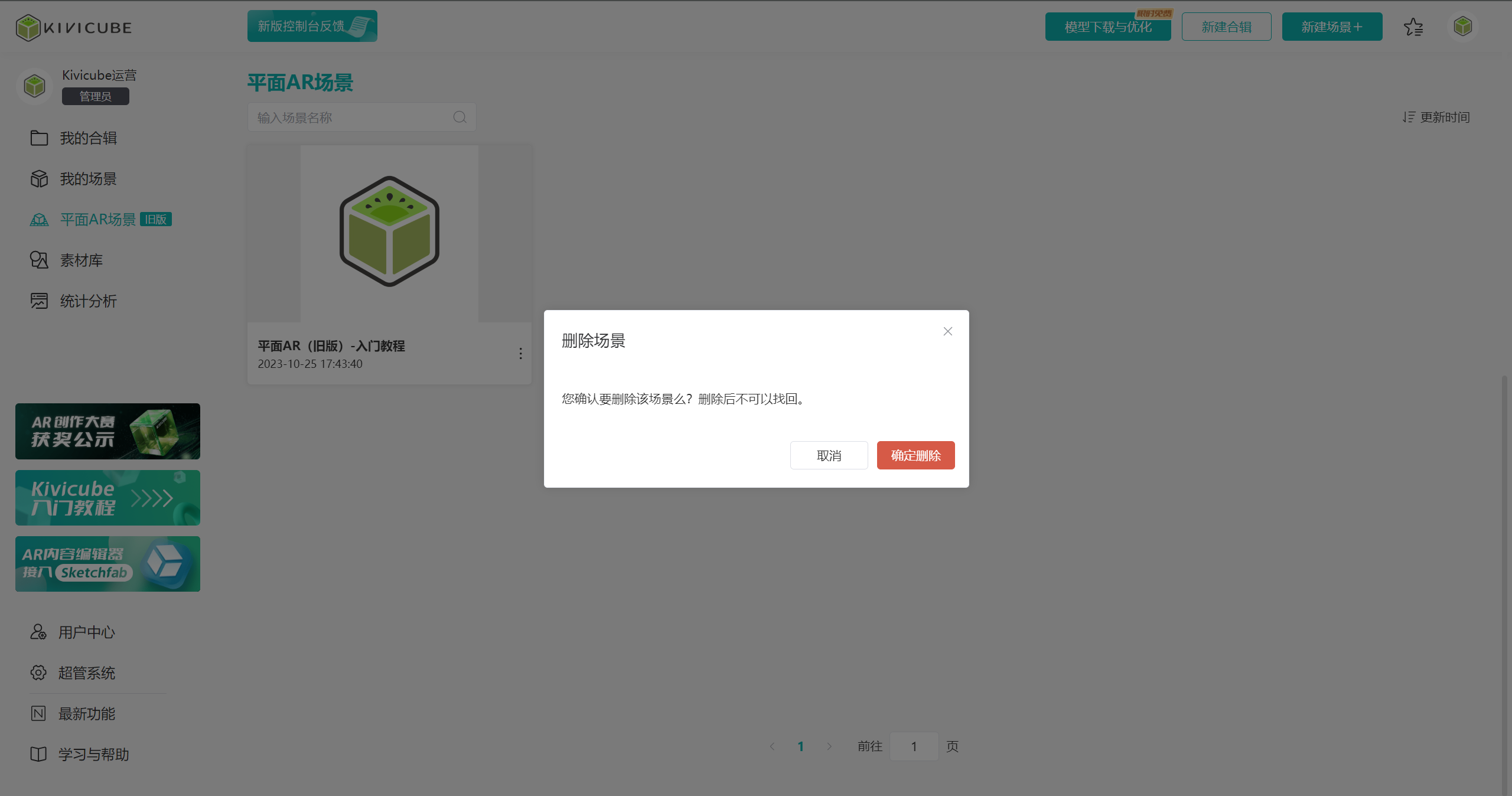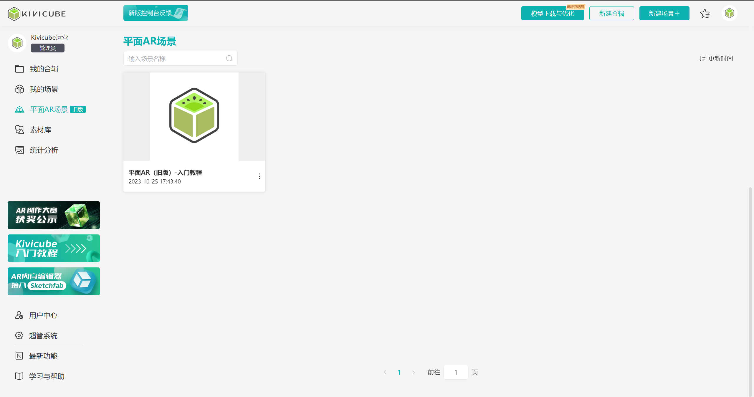 使用过旧版平面AR的用户,点击“平面AR场景(旧版)”可以查看已成功创建的旧版平面AR场景,同时可以对所有场景进行排序显示。