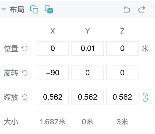 | 大小 | 显示对象在3D画布中的真实大小 |