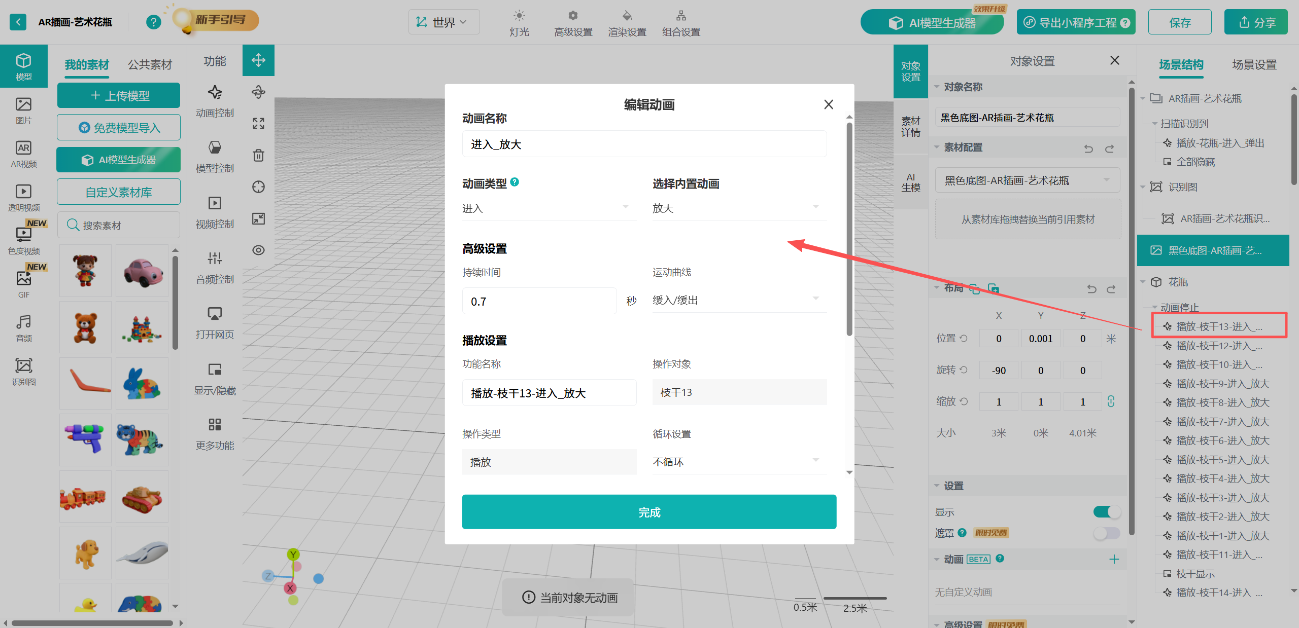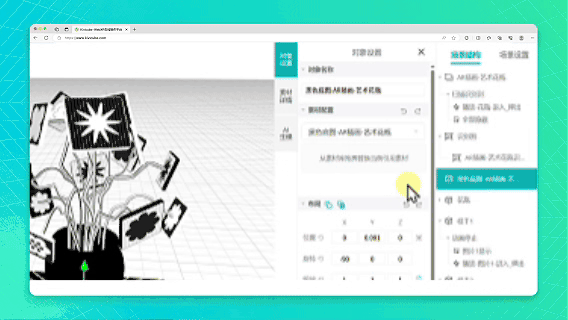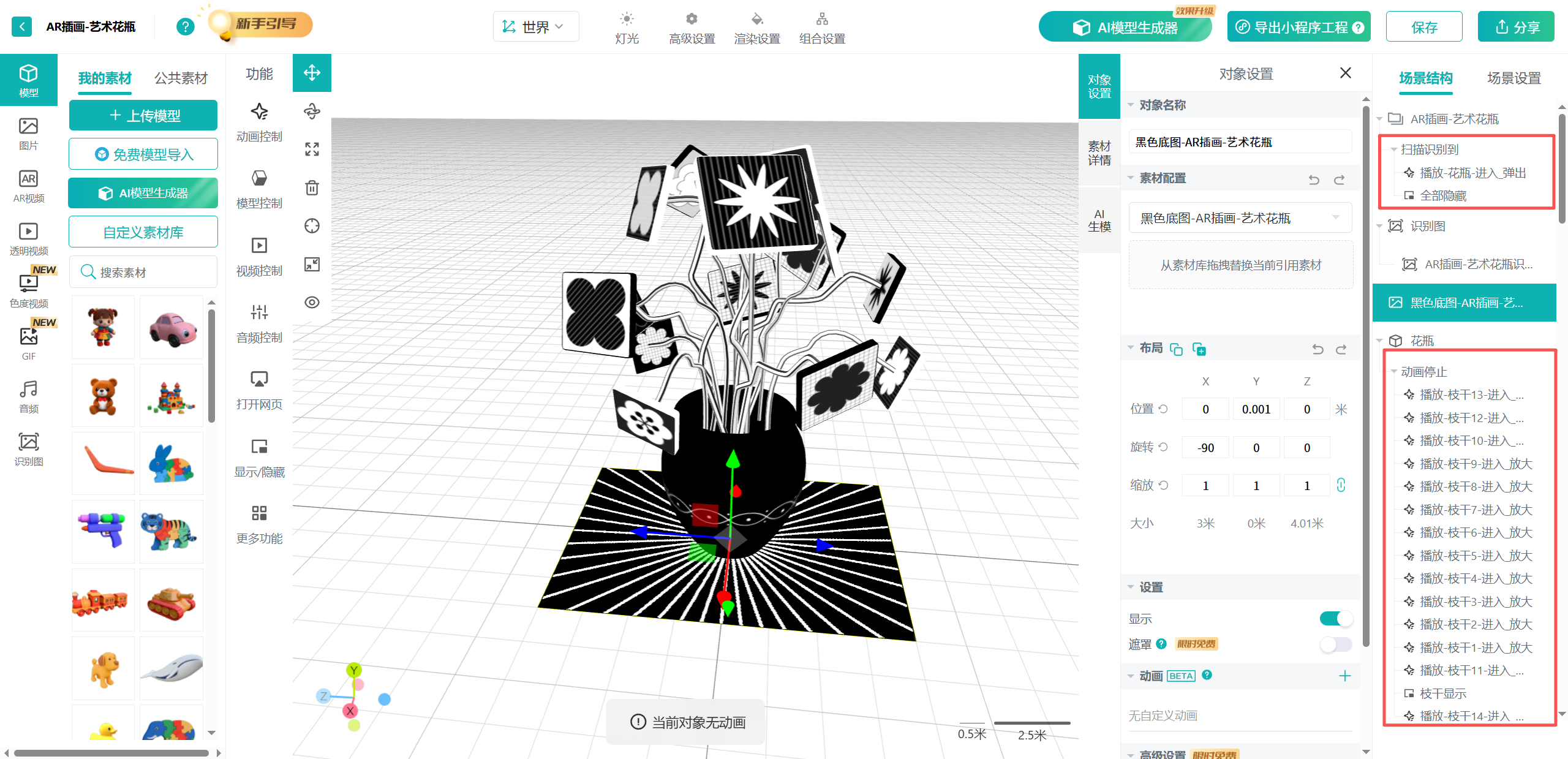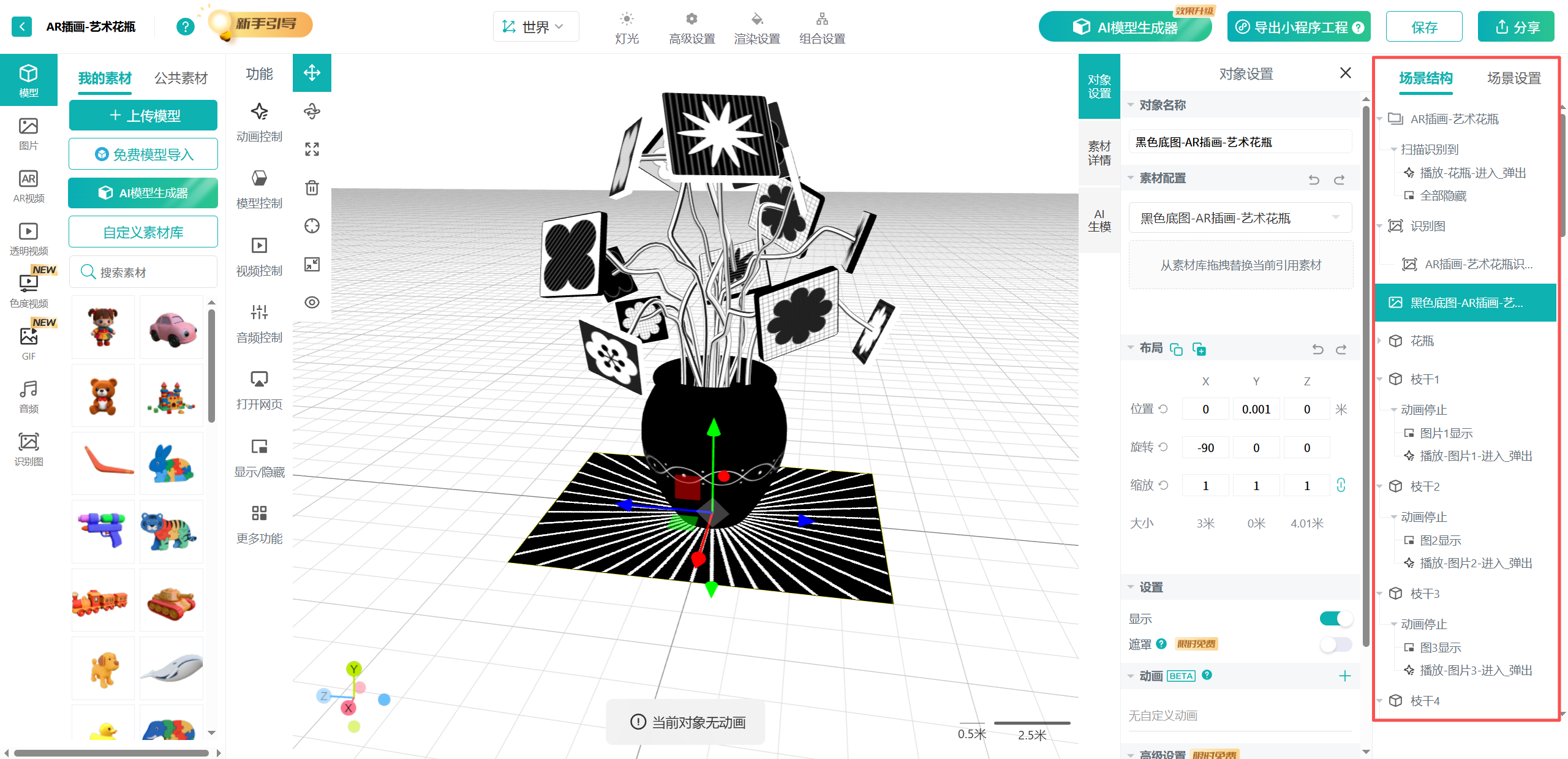 「场景结构」列表是你管理 AR 场景的“总控制台”,能帮你直观掌控该场景内的所有素材、交互与动画,操作简单易懂。