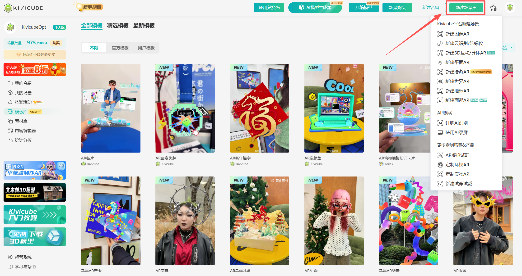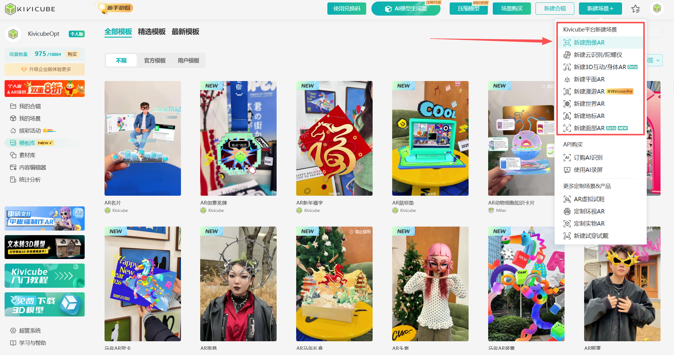 选择想要创建的场景类型,如图像AR