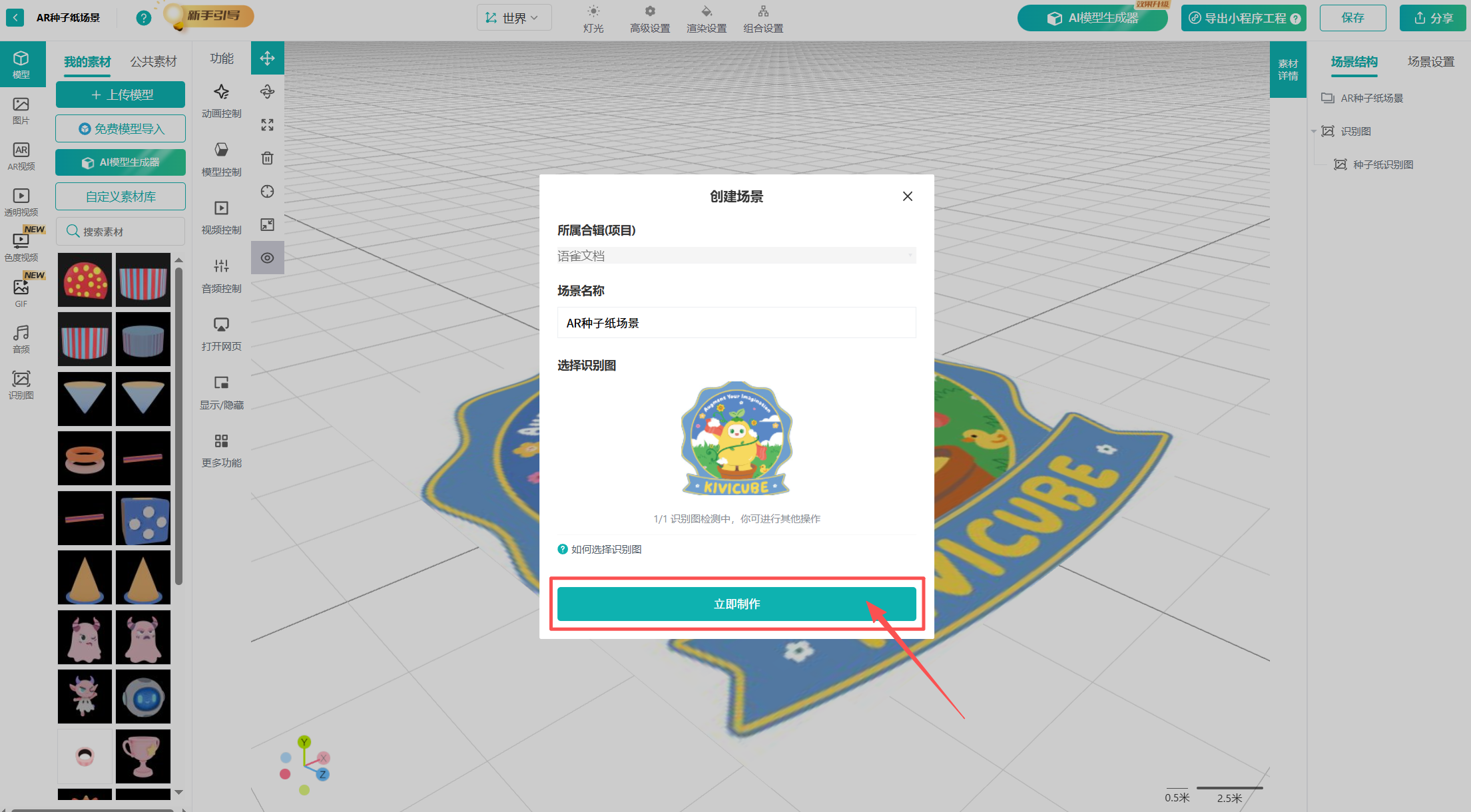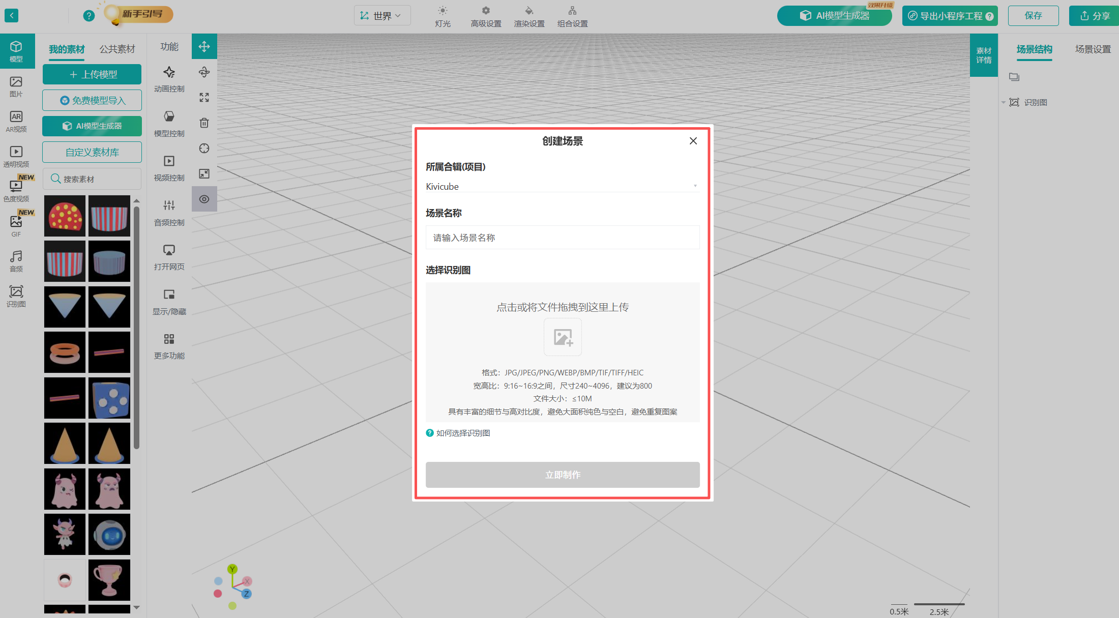 点击立即制作,正式进入「场景编辑器」,开始AR创作