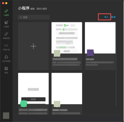 启动微信开发者工具,在首页找到右上角的“导入”按钮,准备把本地工程导入进来。