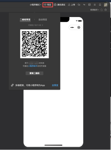 步骤 5:编译成功后点击“预览”扫码体验