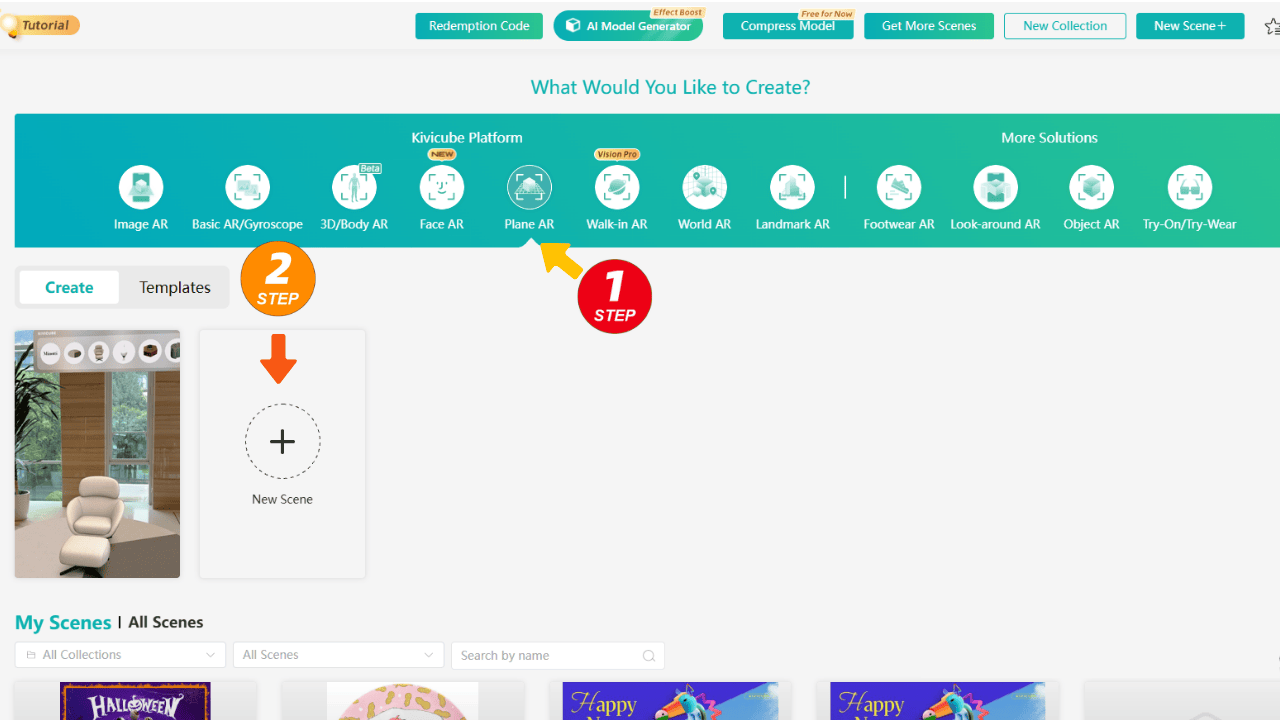 Choose Plane AR, create a New Scene.
