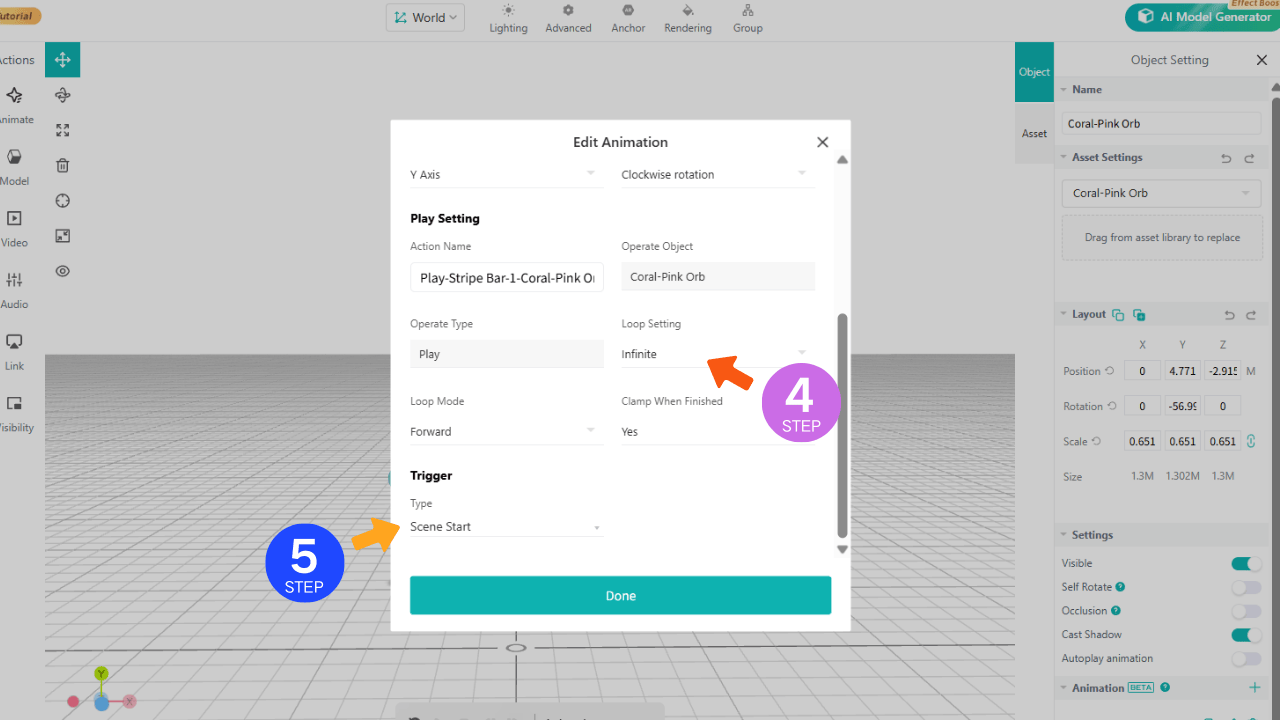 - Adjust the animation duration in Advanced Settings. The smaller the value, the faster the rotation.