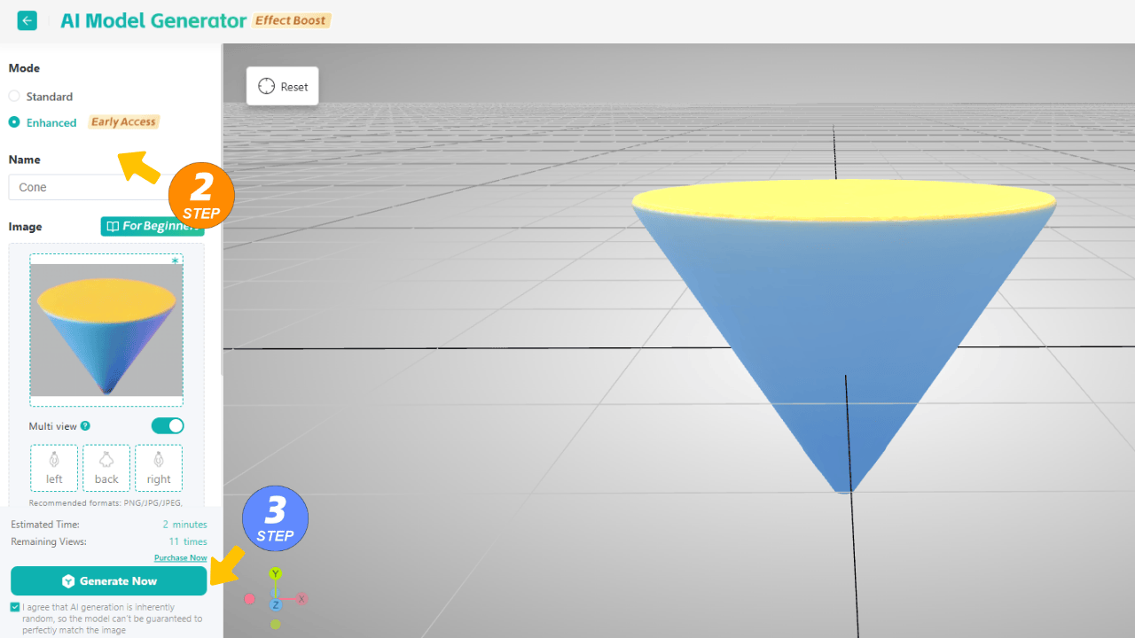 Select Image to 3D, upload your layers, and click Generate Now.Wait a moment — your model is ready.