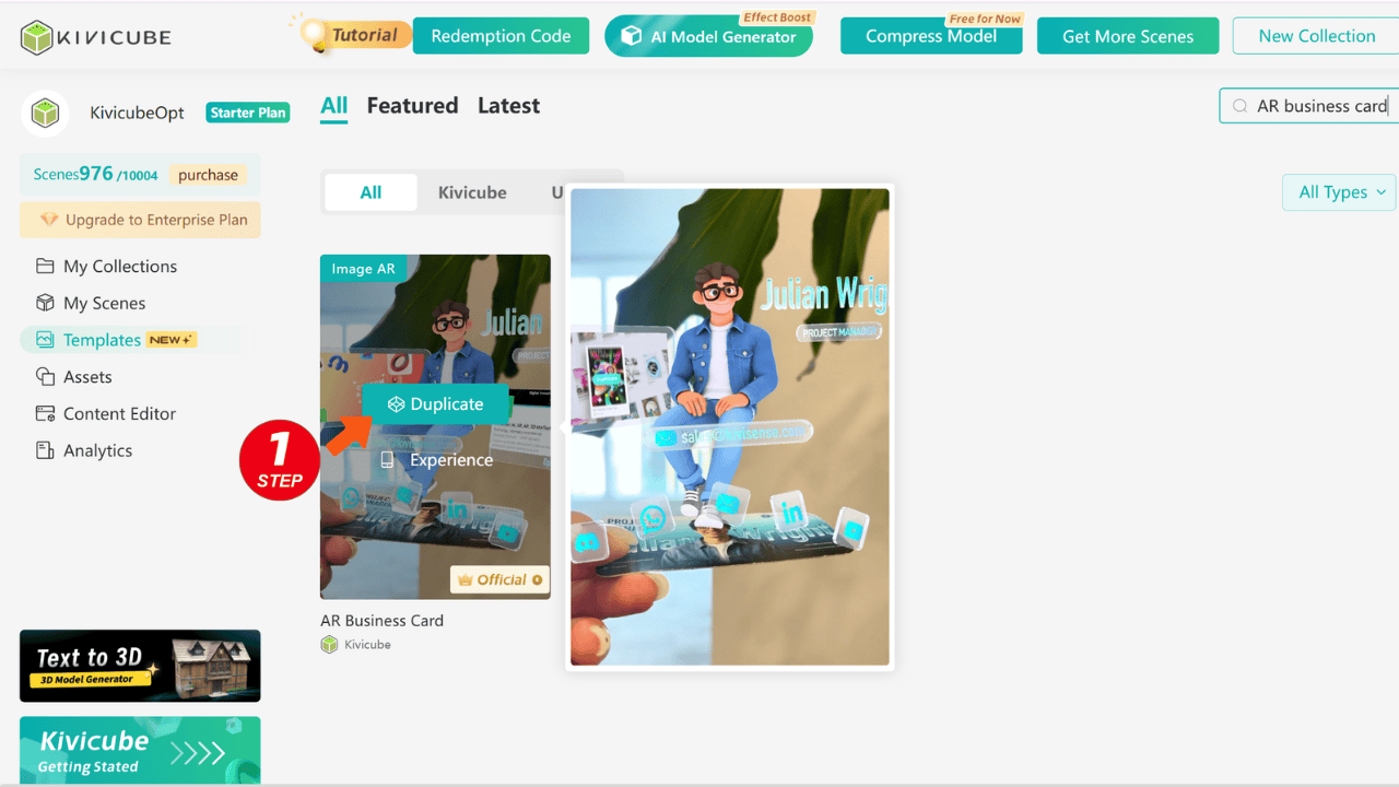 Step 3 In the template library, search for "AR business card"