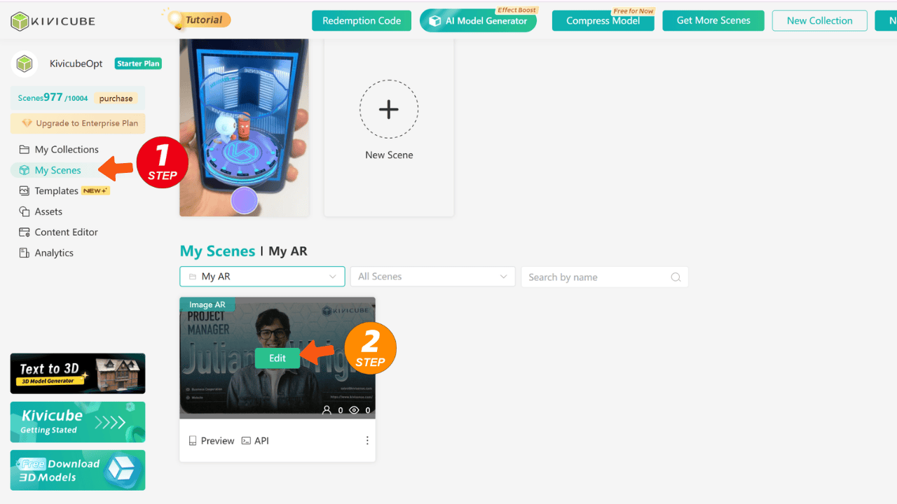 Step 5 Go to My Scenes and click Edit to enter the editor